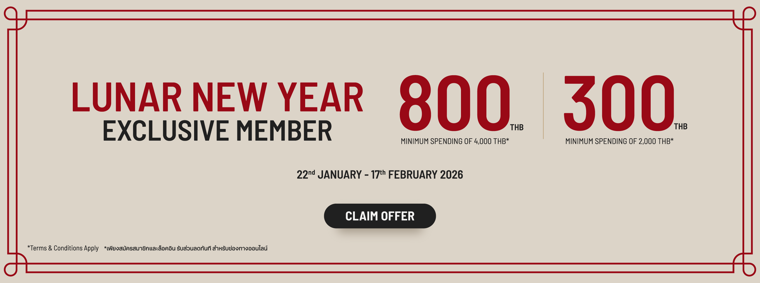• The following branches are excluded from this promotion: TERMINAL 21 Nakhon Ratchasima and TERMINAL 21 Rama 3.
