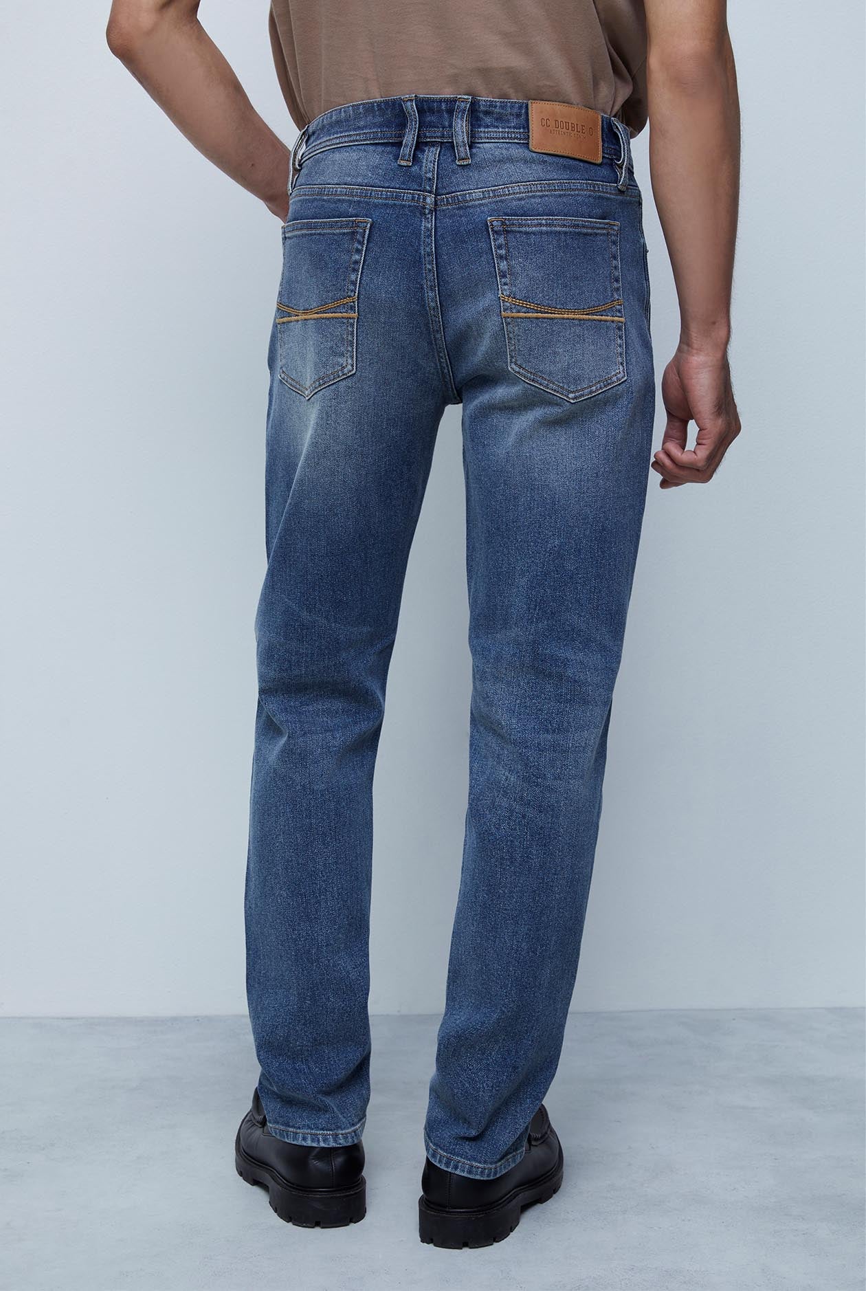 MEDIUM WASH DISTRESS SLIM FIT JEANS