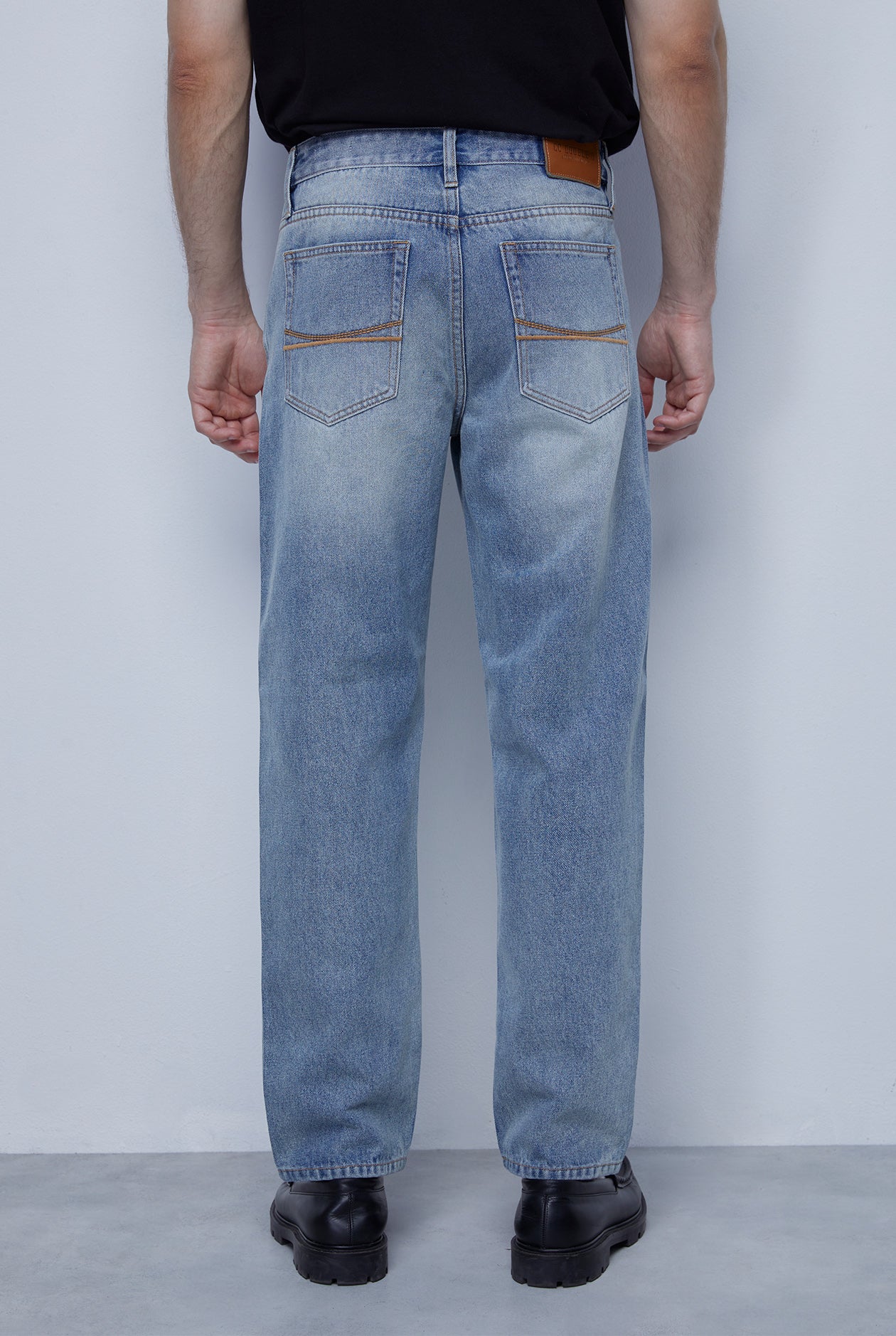 MEDIUM BLUE WASH RUST TINT STRAIGHT FIT JEANS