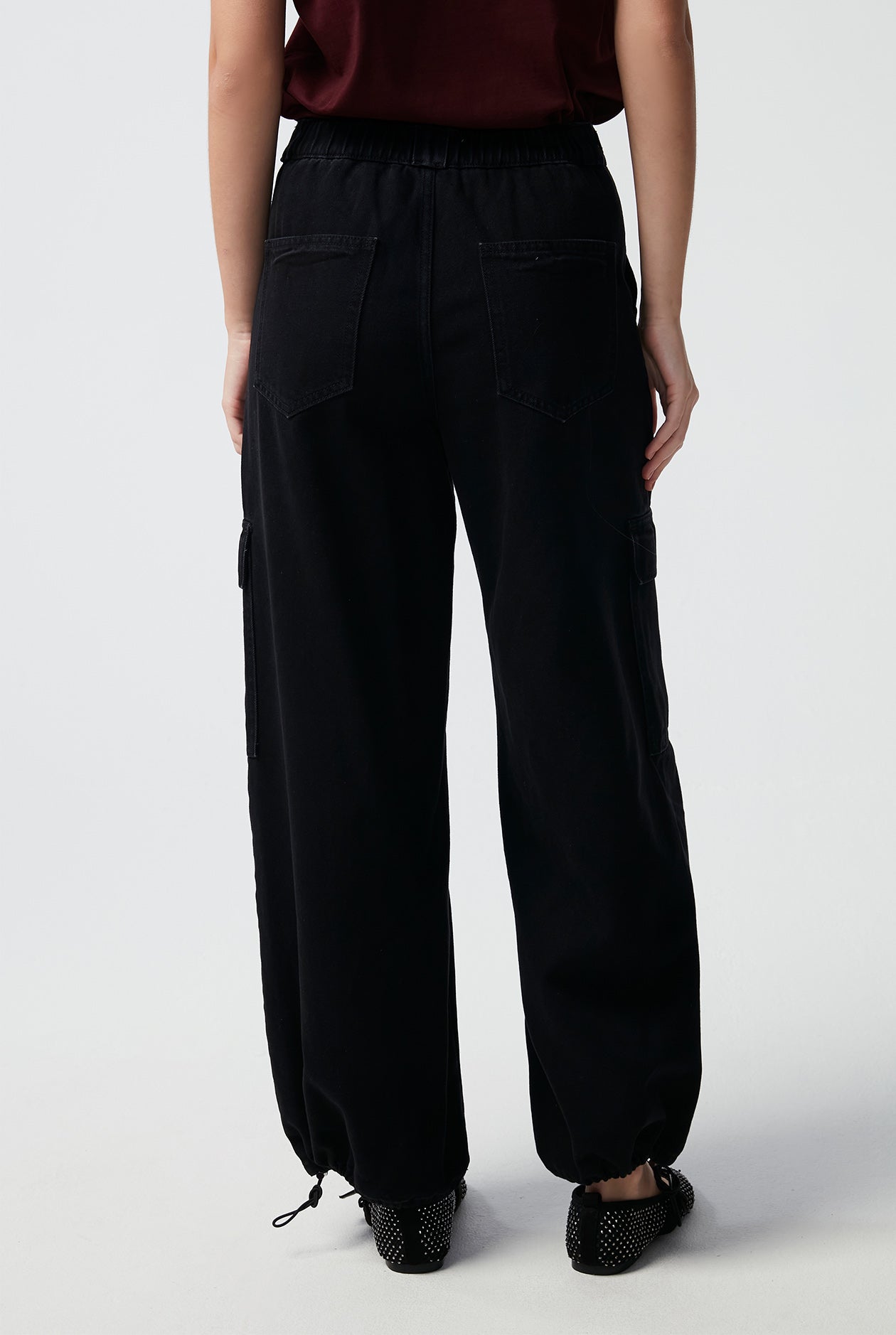 Low-Rise Cargo Jeans combine street-smart style with practical details, offering a relaxed fit and functional cargo pockets for everyday versatility. The low-rise waist and zip fly with button closure create a comfortable yet secure fit, while the drawstring cuffs add a modern touch and allow you to customize the silhouette. These jeans effortlessly balance casual confidence and utility, perfect for making a subtle statement wherever you go.