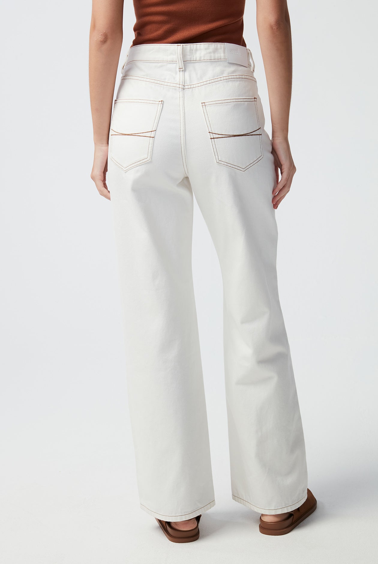 White Baggy Jeans bring a fresh and relaxed vibe to your casual wardrobe with their roomy silhouette and clean white wash. Featuring classic five-pocket styling and a zip fly with button closure, these jeans stand out with subtle brown stitching details that add warmth and character. The baggy fit ensures comfort and ease of movement, making them a perfect choice for those who want to express casual confidence with a modern twist.