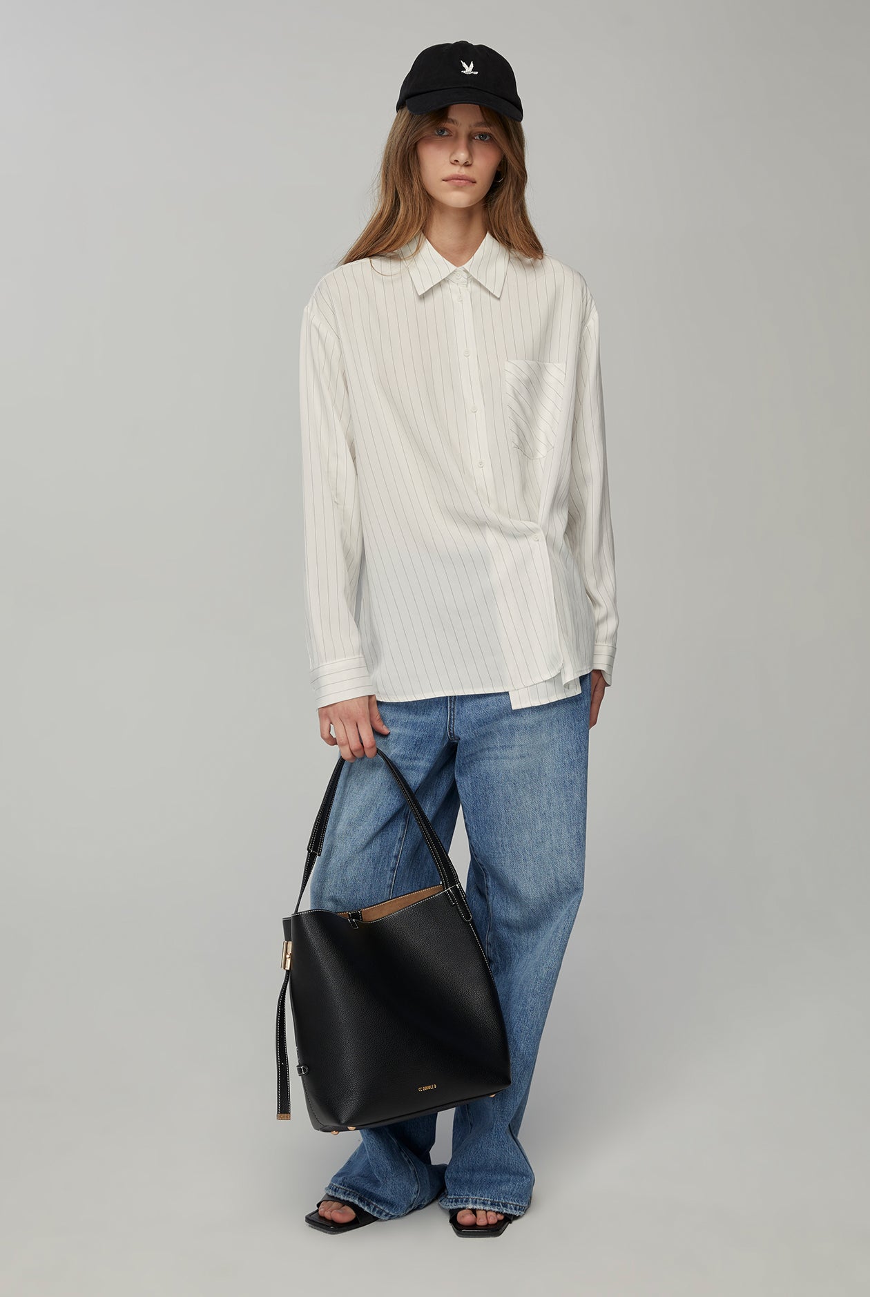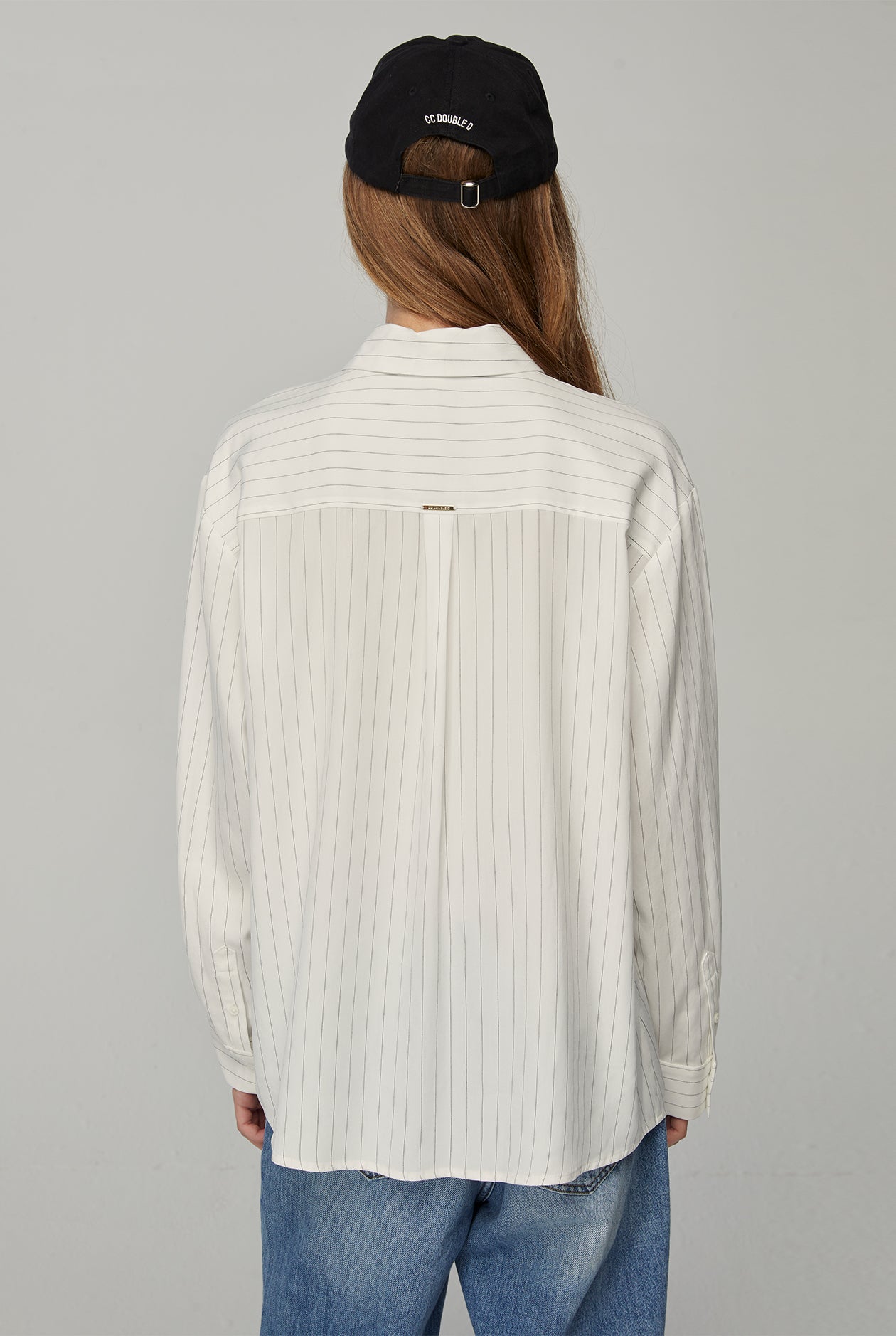 PINSTRIPE BUTTON-DETAIL SHIRT