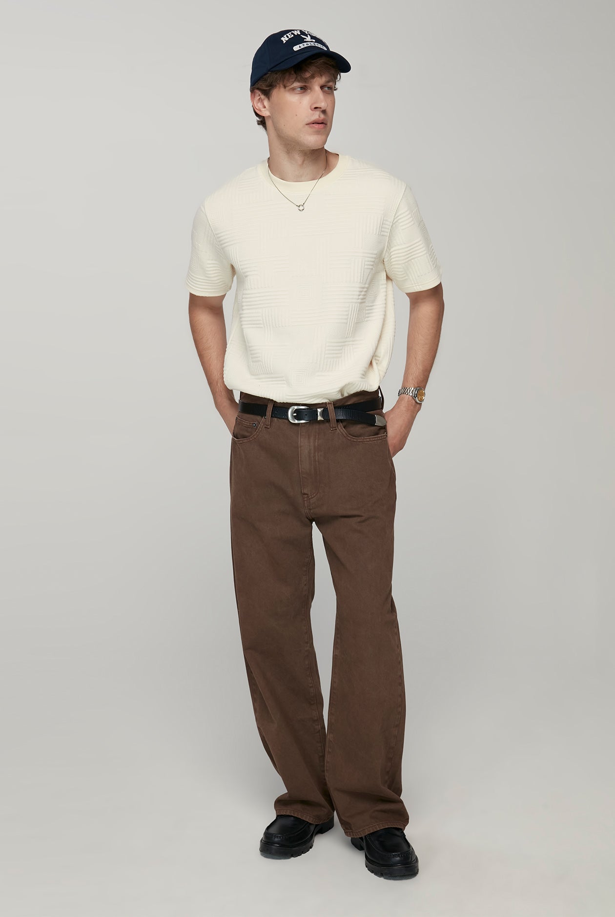 These dark brown garment-dyed baggy jeans offer a relaxed fit with rich, vintage-inspired color and unique texture for a laid-back yet fashionable look