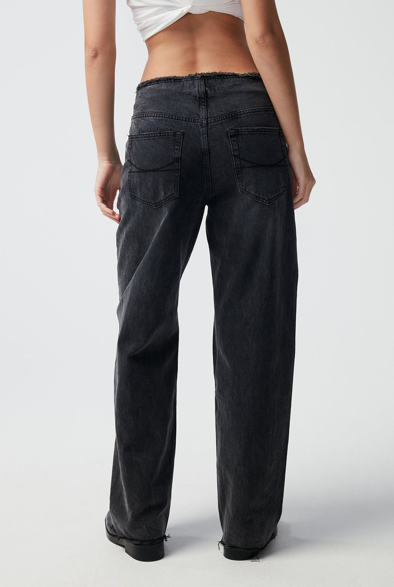These black wide-leg jeans offer a bold and modern silhouette, designed with a classic five-pocket layout and a zip fly with button closure. The black wash gives a sleek and polished finish, making them easy to pair with anything from fitted tops to oversized outerwear.