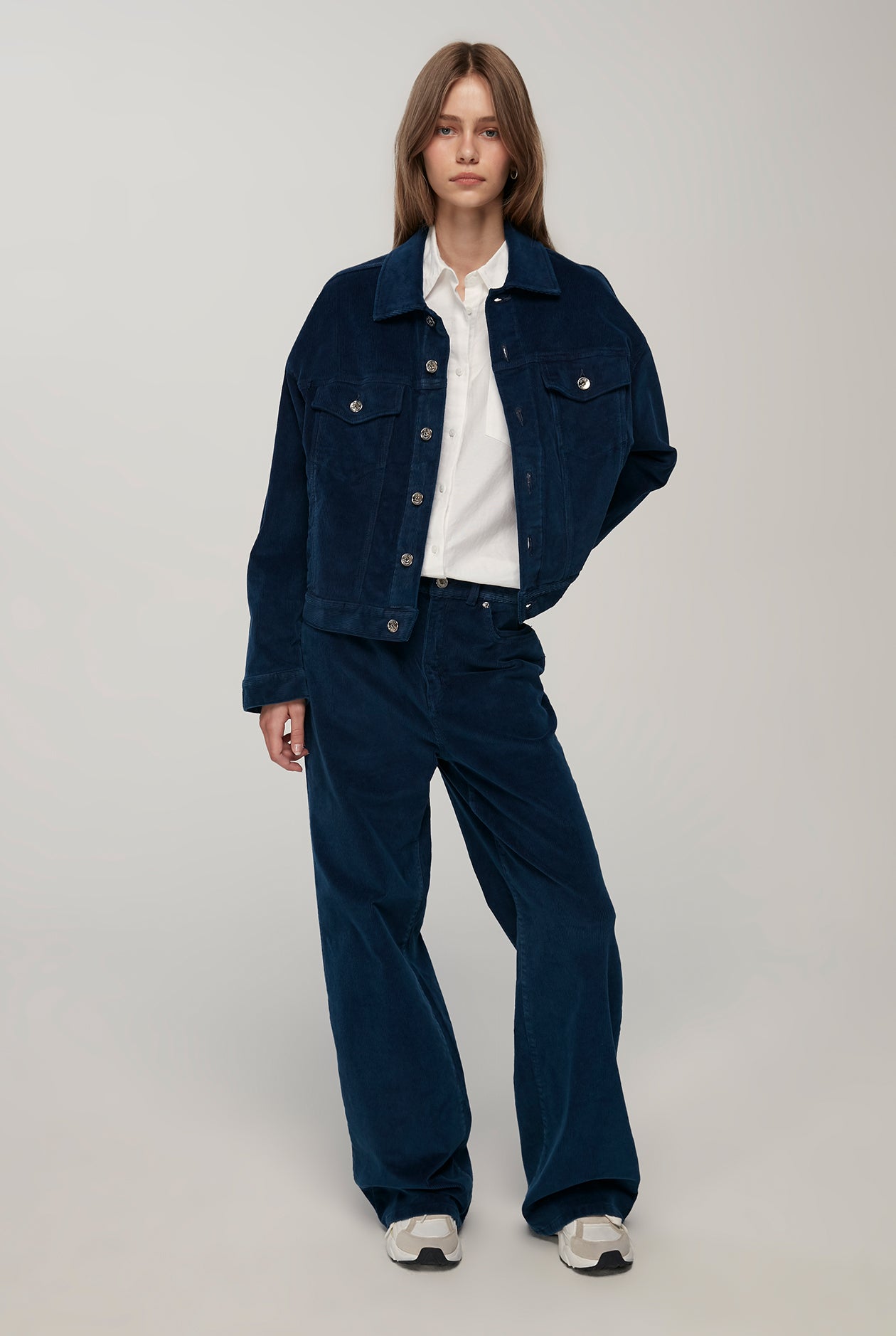 Revamp your wardrobe with the Wide Leg Pants, made from luxurious washed velvet in a rich blue hue. Crafted from 100% cotton, these pants offer both comfort and style, featuring a relaxed fit that flatters all body types. Perfect for pairing with fitted tops or oversized sweaters, they easily transition from casual outings to more polished events.