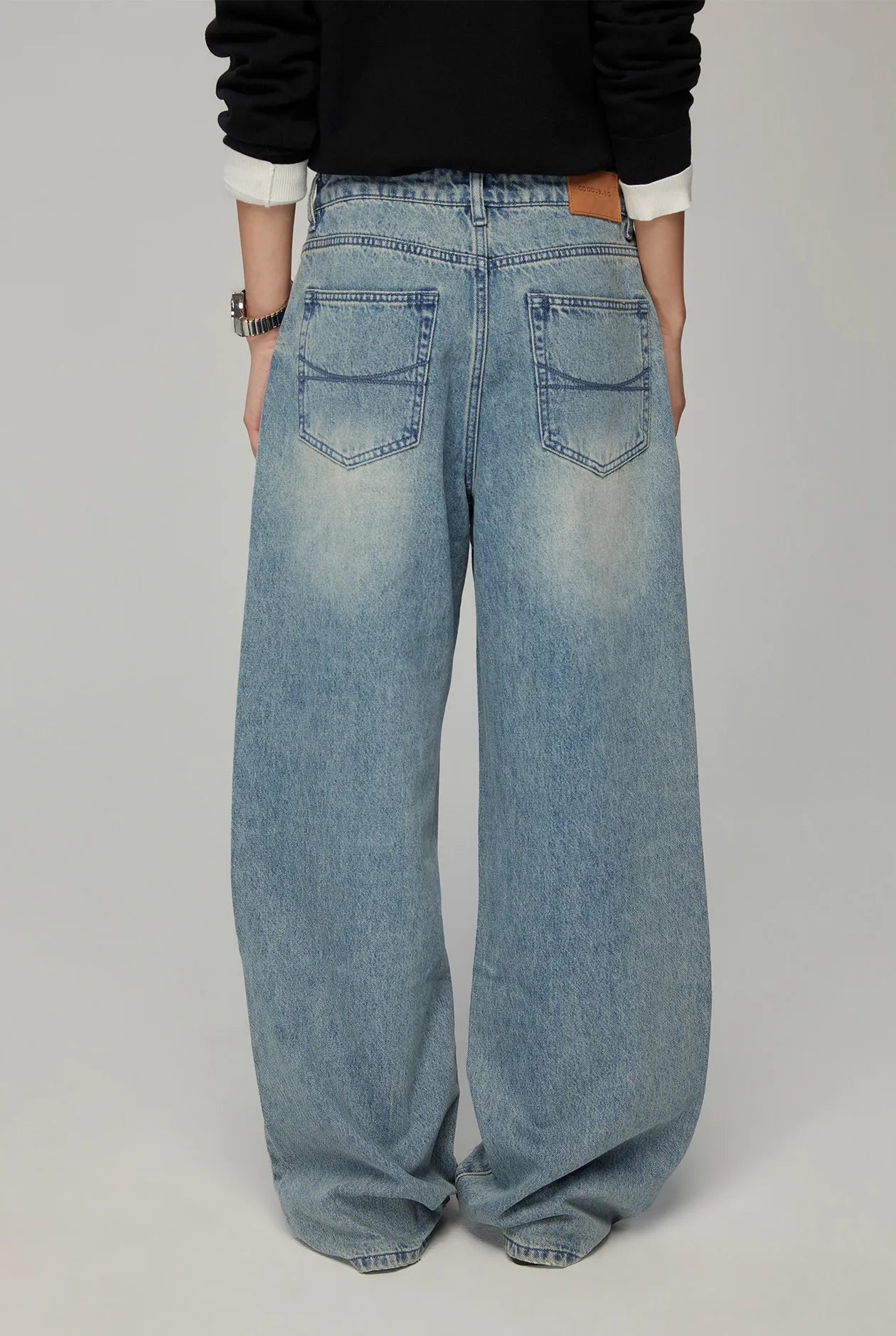 Casual yet stylish, these wide-leg pleated jeans feature soft-wash light blue denim for a relaxed vibe. The pleated front adds structure while the draped fabric creates a longer, slimmer leg effect. Perfect to pair with an oversized shirt or knitwear.