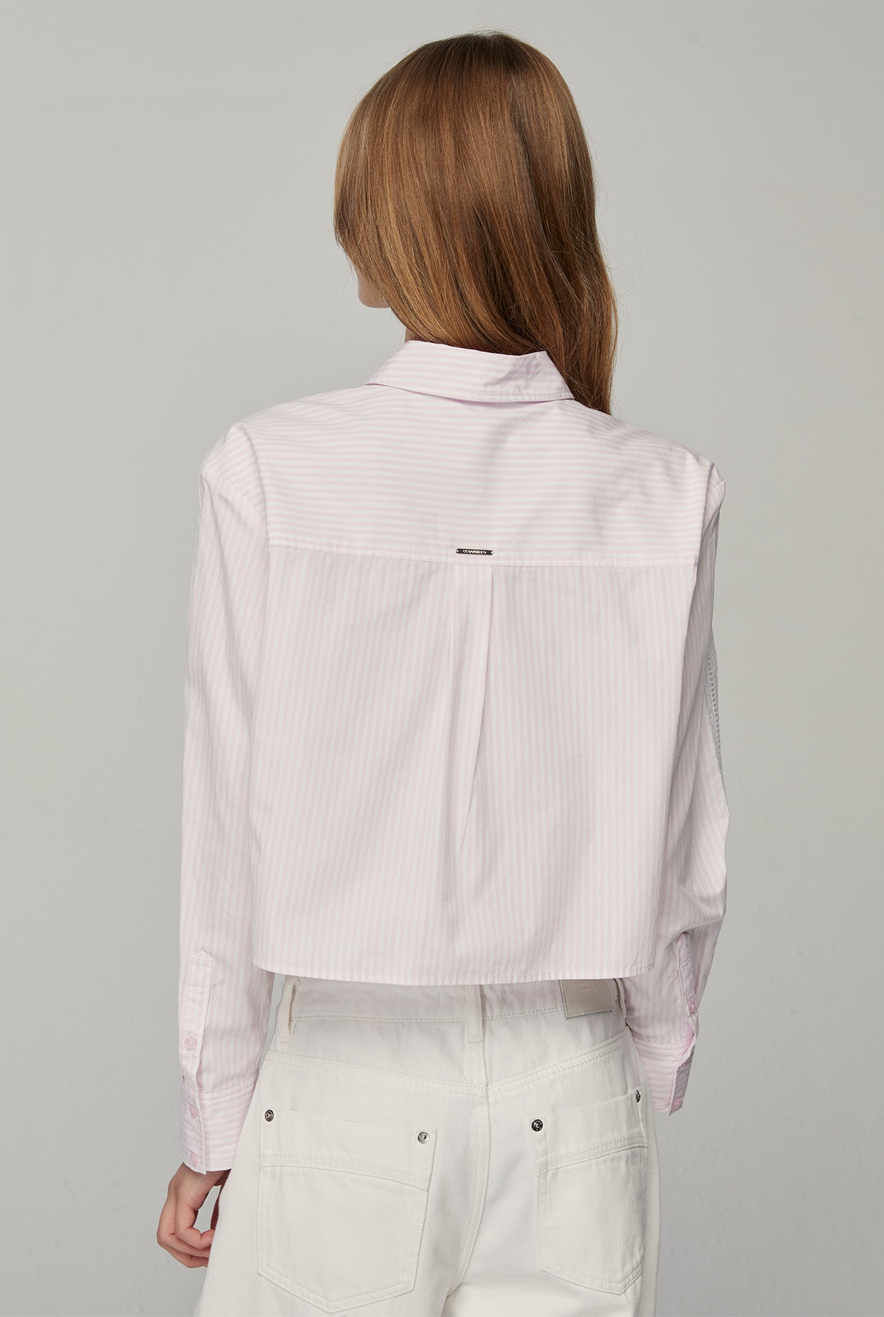 PINK LACE PANEL SLEEVE STRIPED SHIRT