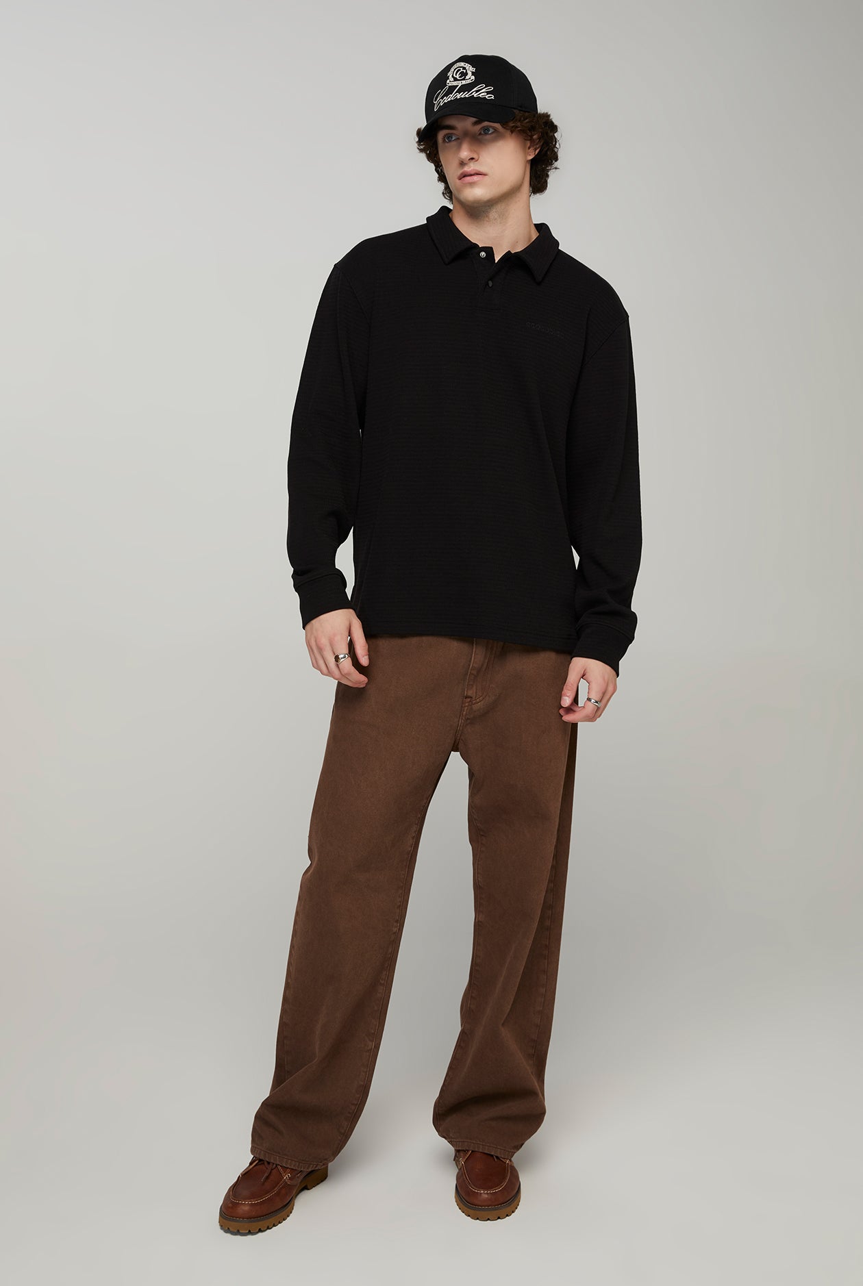 RIB TEXTURED LONG SLEEVE POLO
