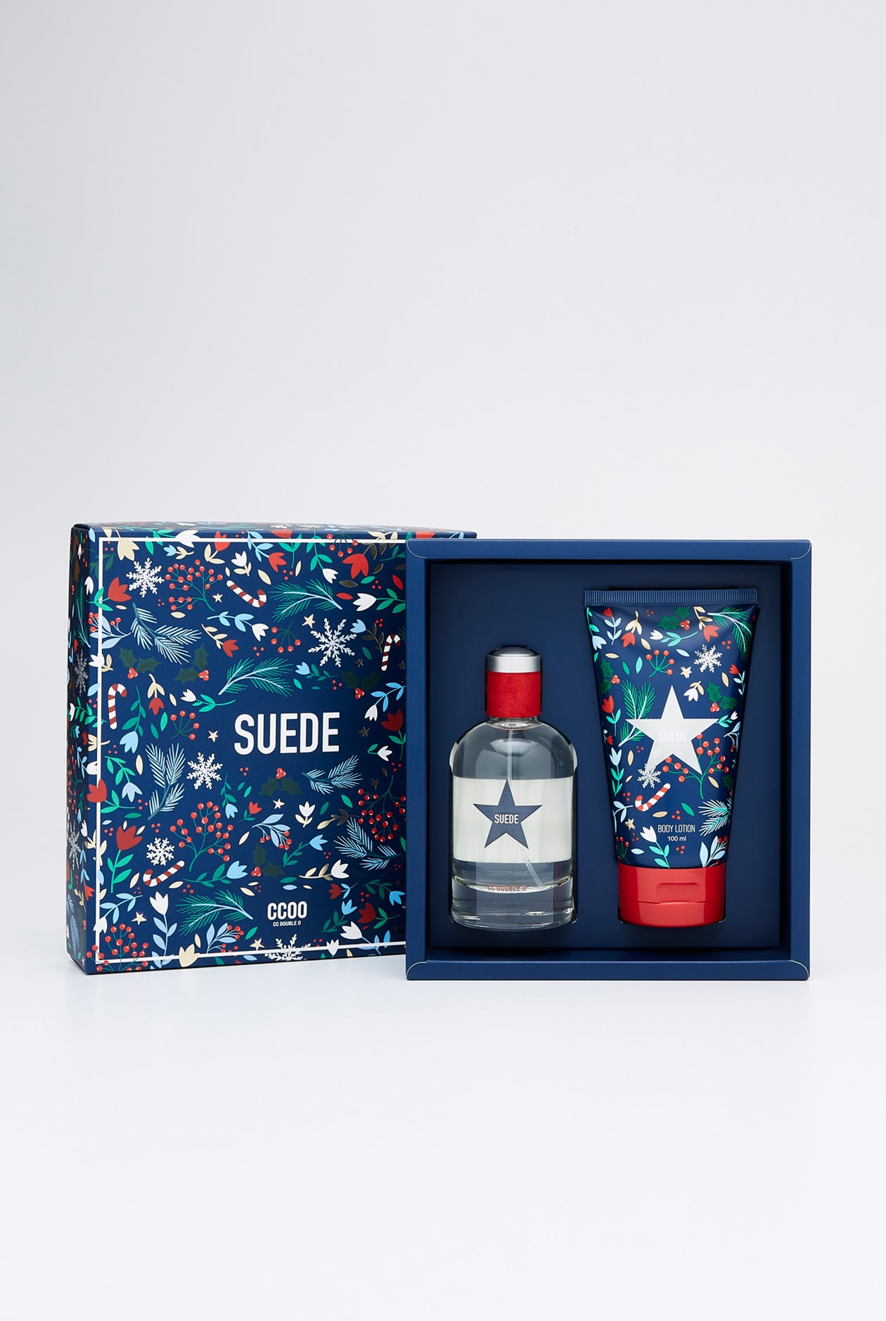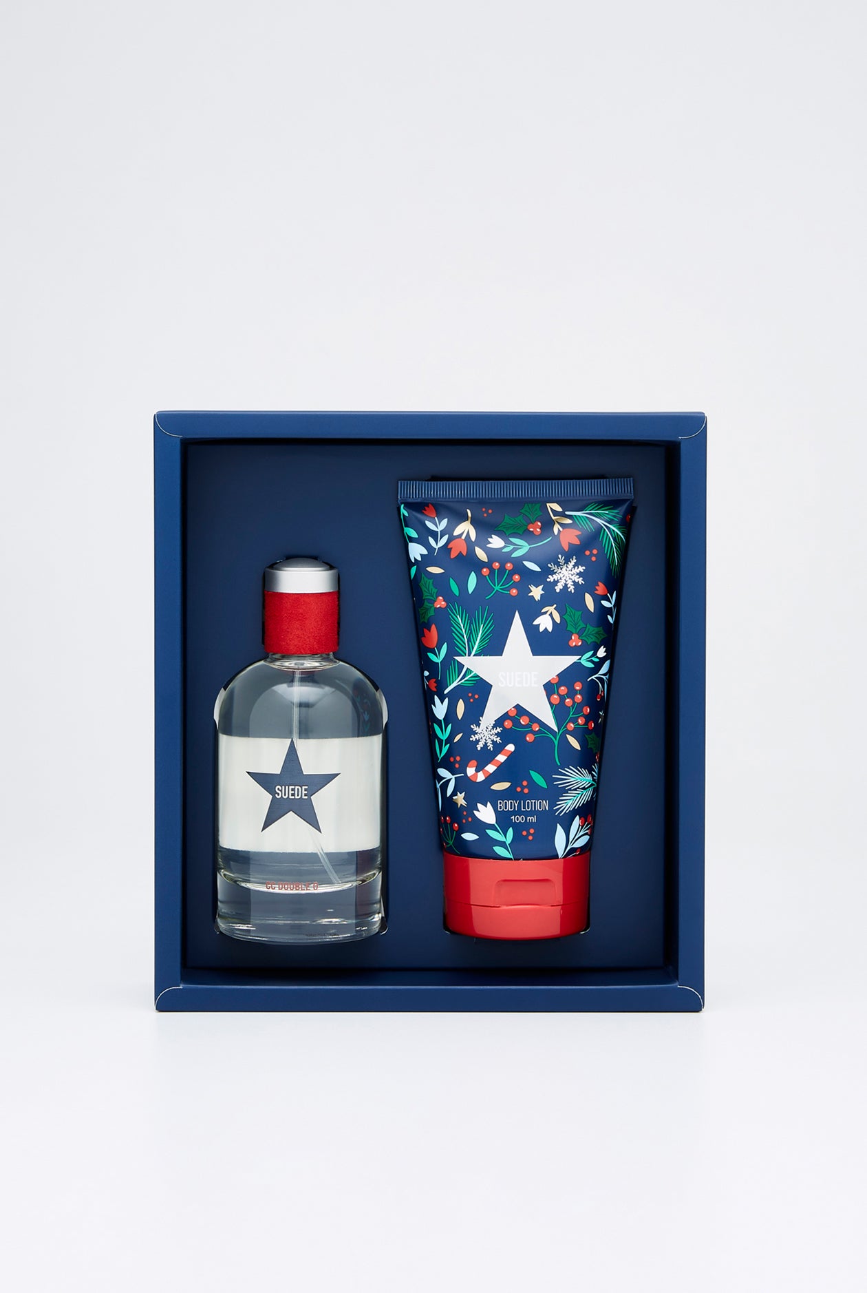 The Suede Fragrance Gift Set is a luxurious Christmas duo featuring an Eau de Parfum and a matching Body Lotion. The set offers a complex and sophisticated scent profile that balances invigorating freshness with deep, grounding warmth. A scent journey that starts with sparkling bergamot and citrus fruits. The heart is a cool contrast of spicy black pepper, marine notes, and mint. The scent finally settles into a warm, sensual base of sandalwood, cedarwood, patchouli, and musk.