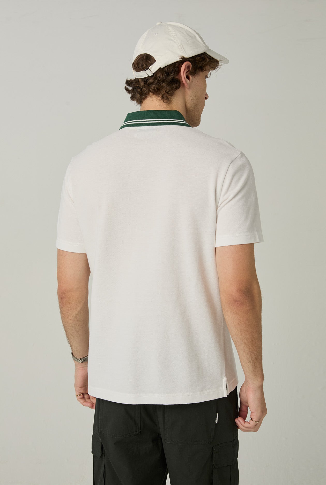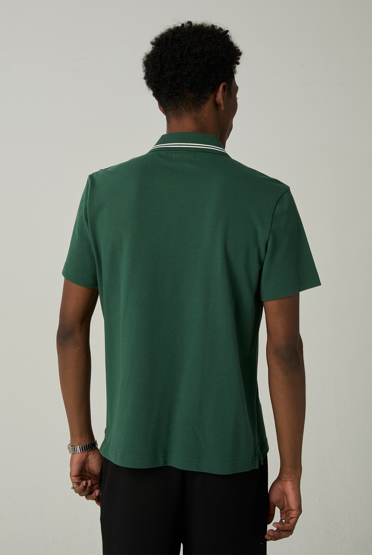 - Polo collar, short sleeves