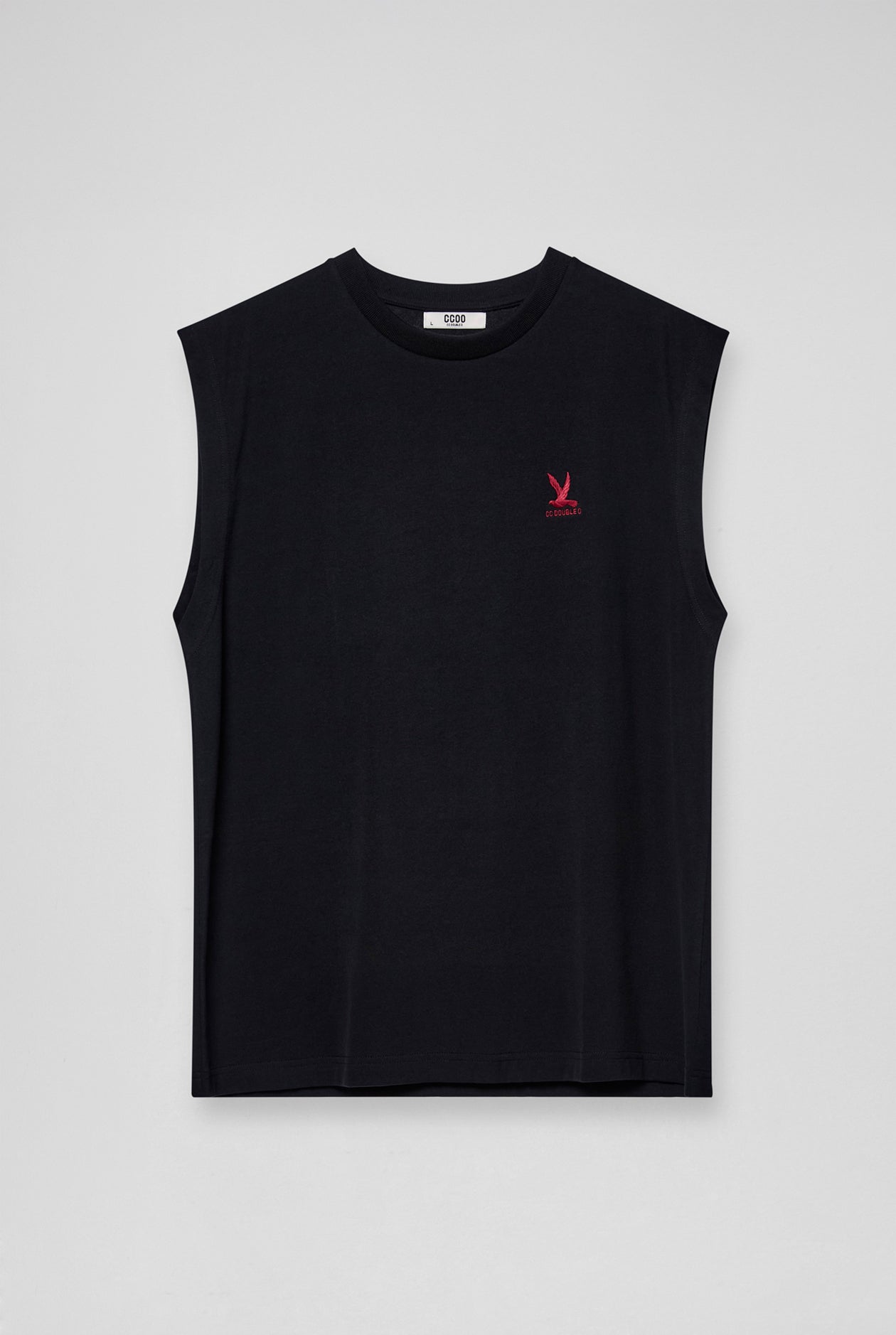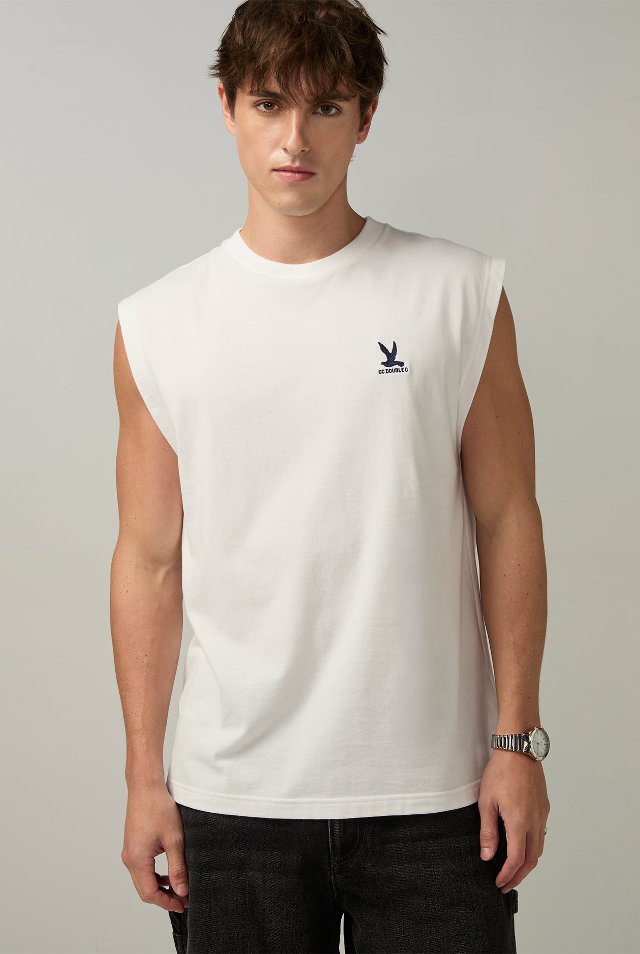 A sleeveless tee featuring the signature bird logo on the chest, designed with a clean casual silhouette. Made from soft cotton fabric for lightweight everyday wear and easy pairing with shorts, joggers, or Relaxed ed street-style looks.