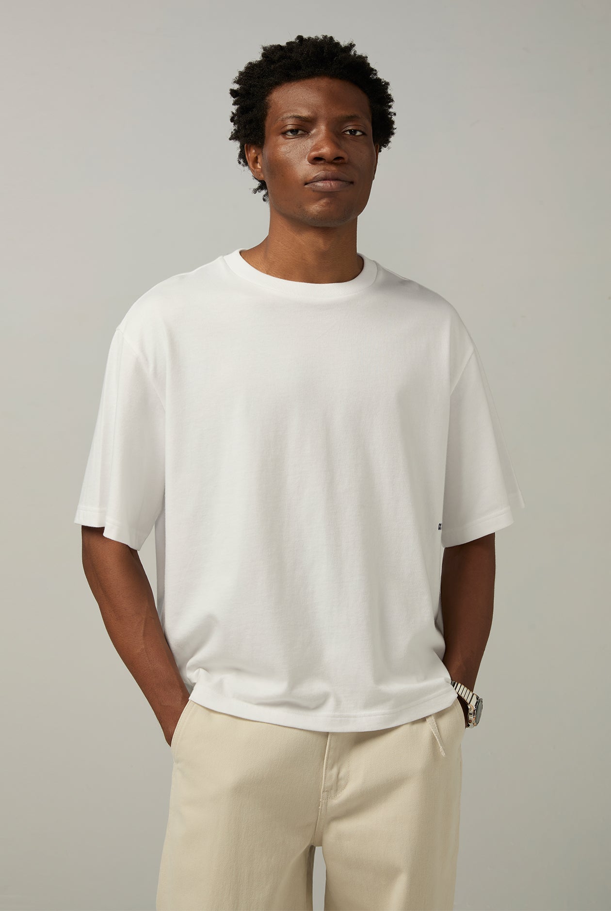 A boxy-fit tee featuring a side-center positioned CC DOUBLE O name logo for a clean modern twist. Designed with a classic crew neck and crafted from soft cotton fabric, making it easy to pair with jeans, shorts, or casual layers for everyday styling.