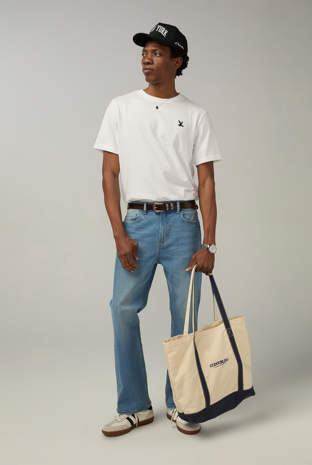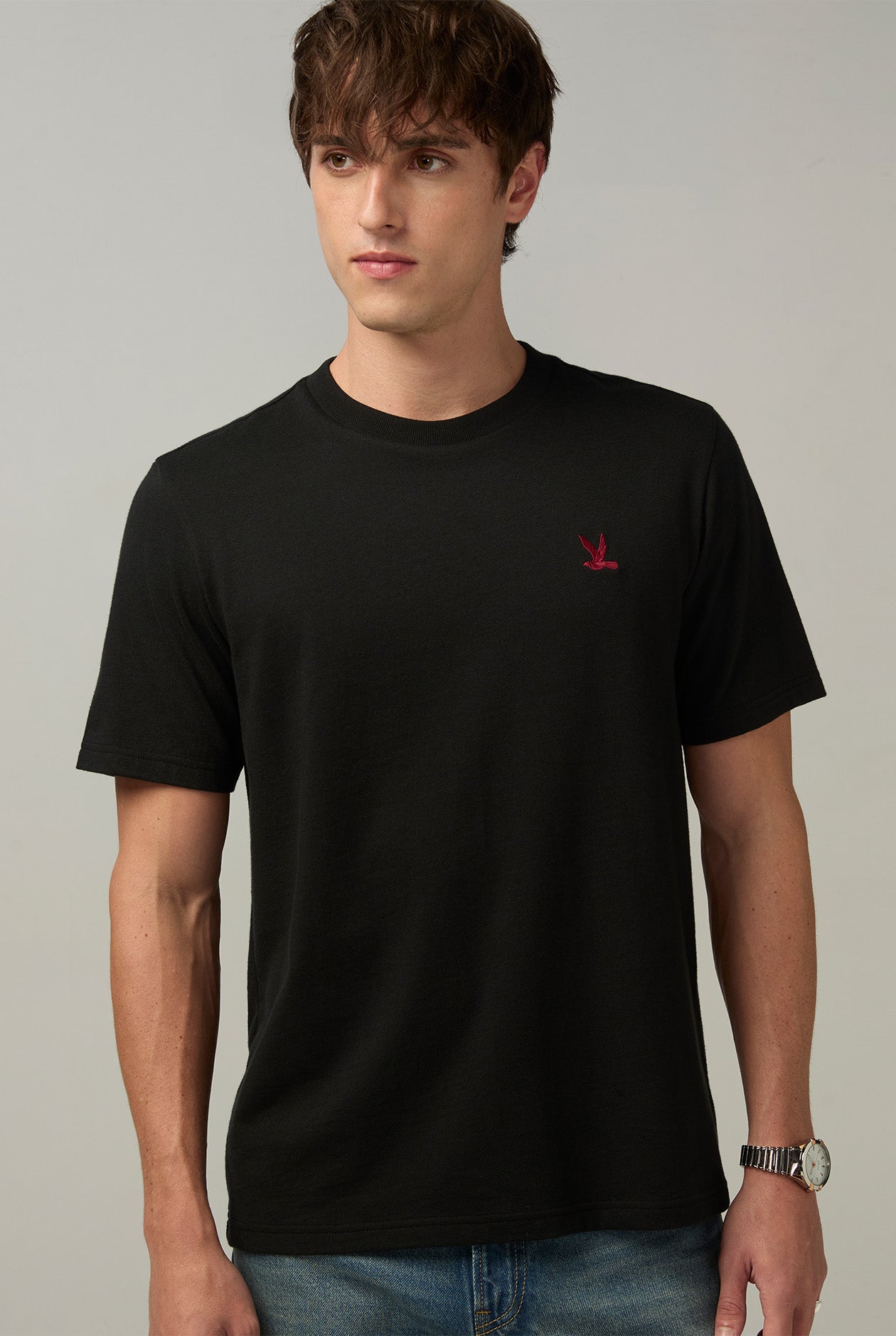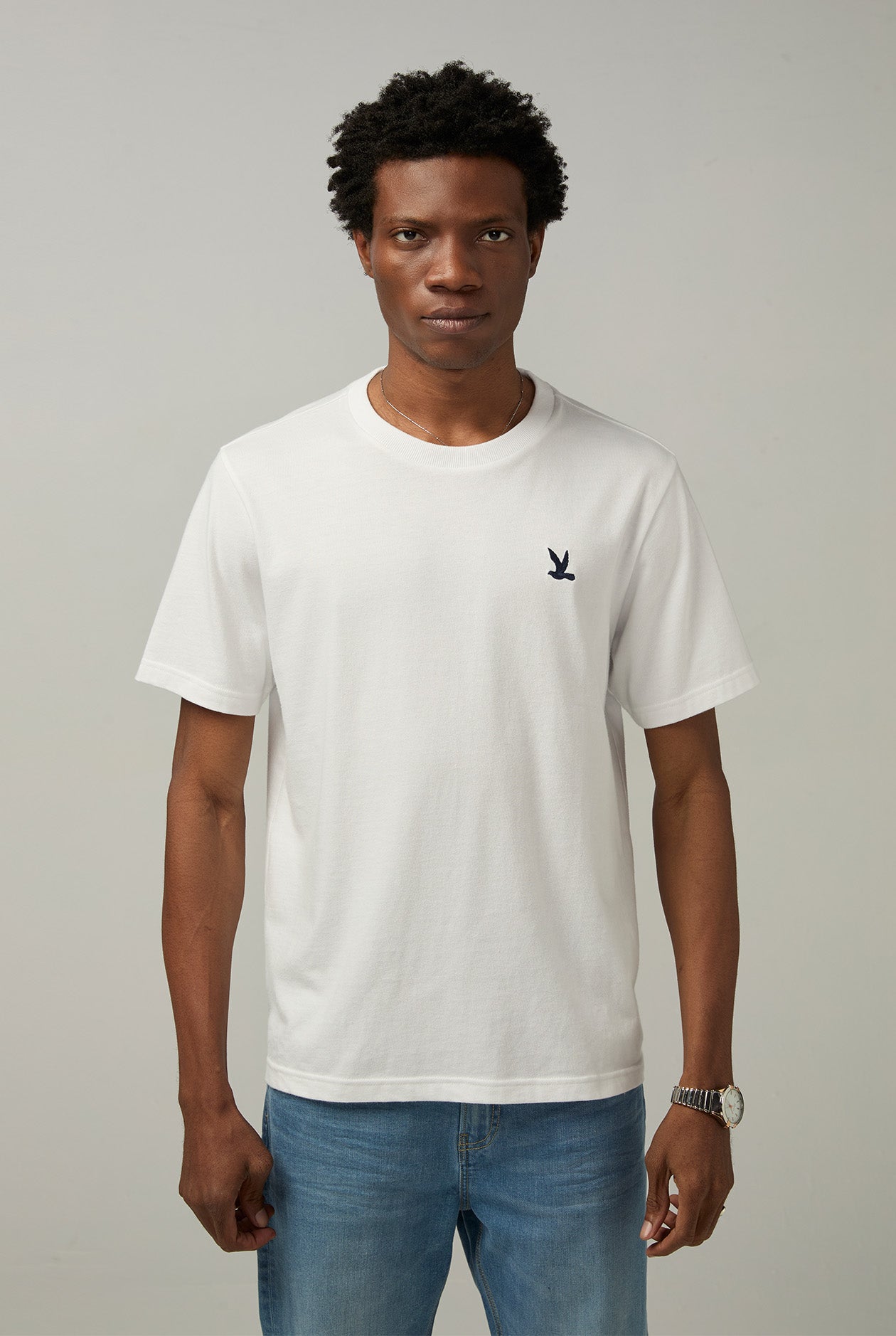A Relaxed -fit tee featuring the embroidery signature bird logo on the chest, designed with a roomy silhouette for a laid-back casual look. Made from soft cotton fabric, offering an easy modern style that pairs well with jeans, shorts, or street-inspired layering.