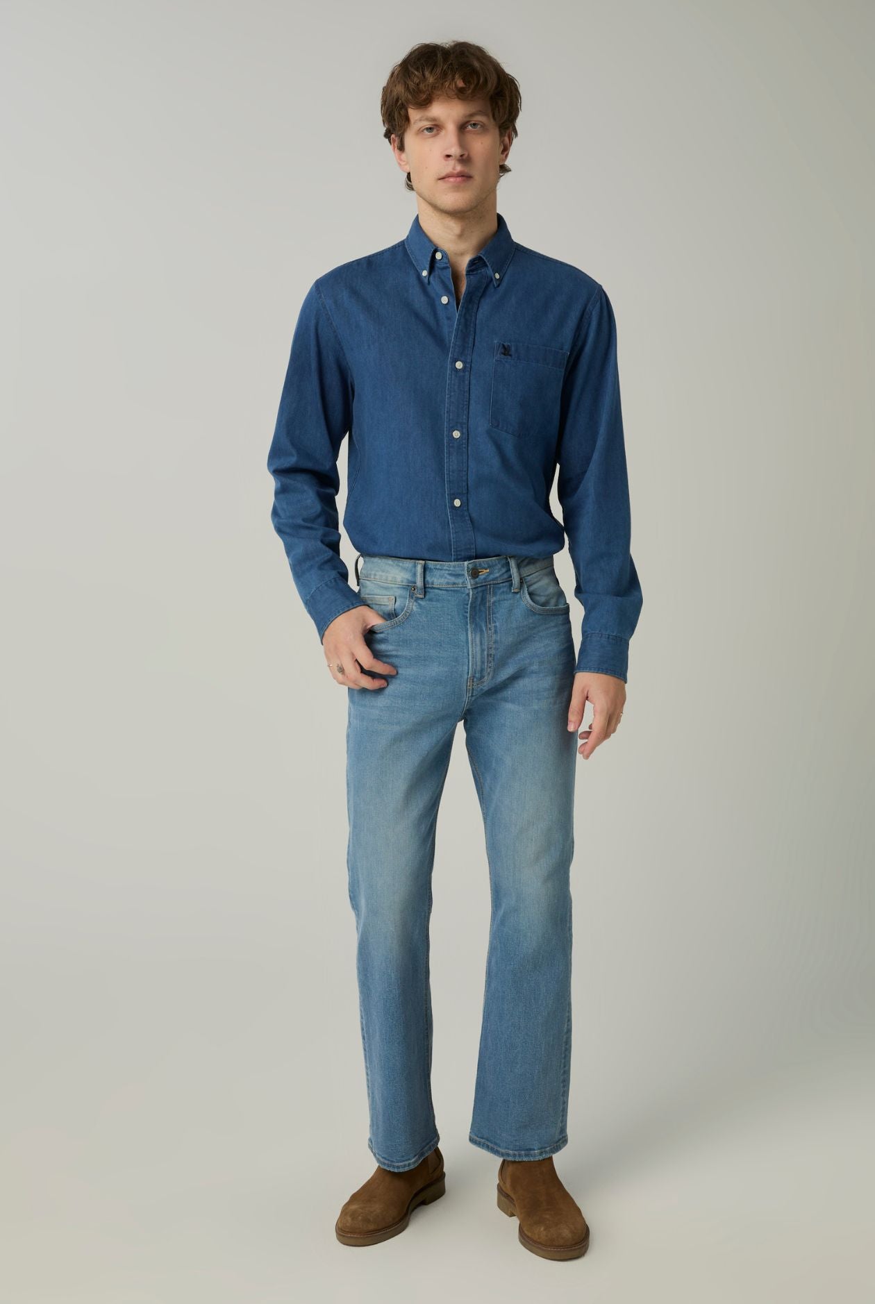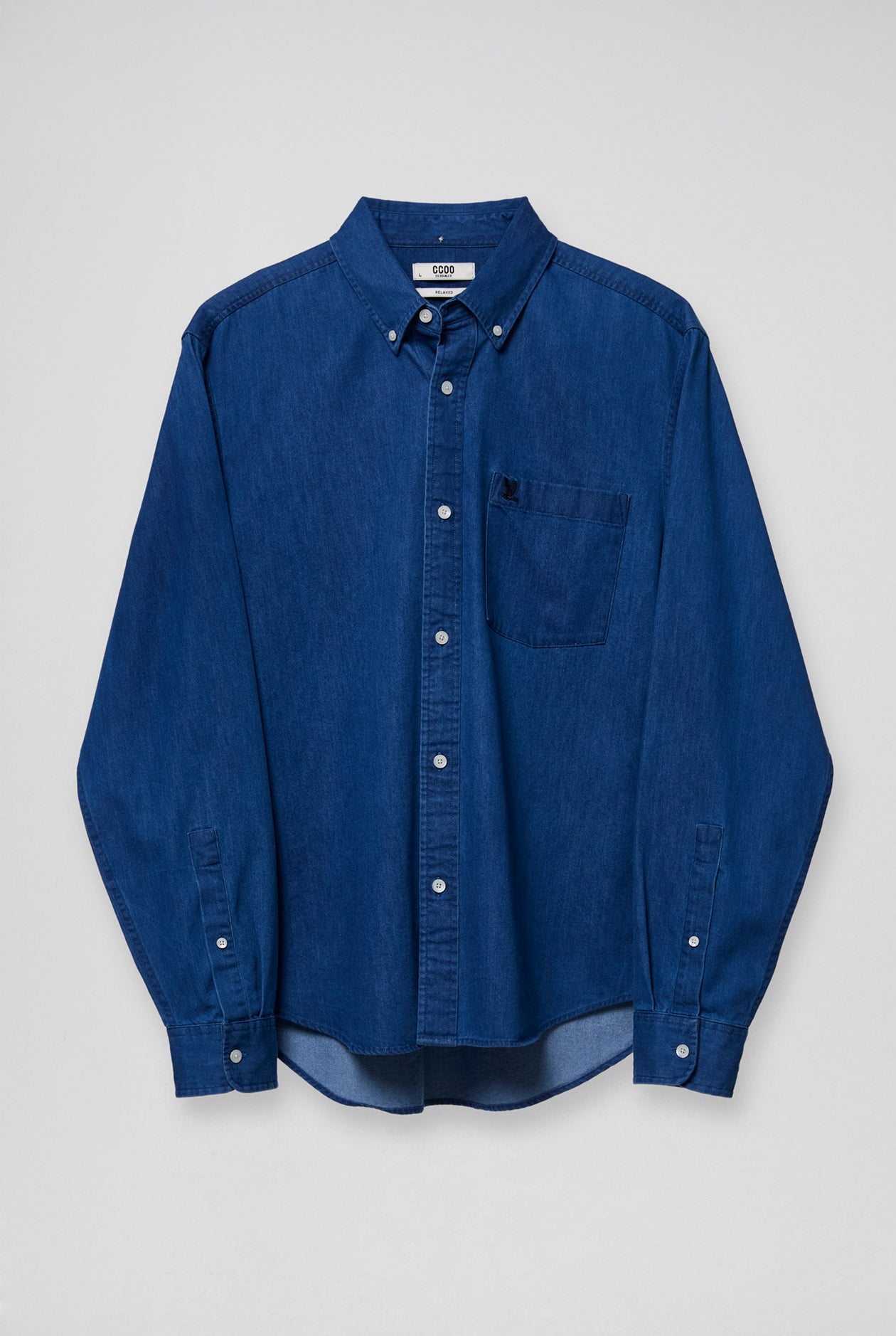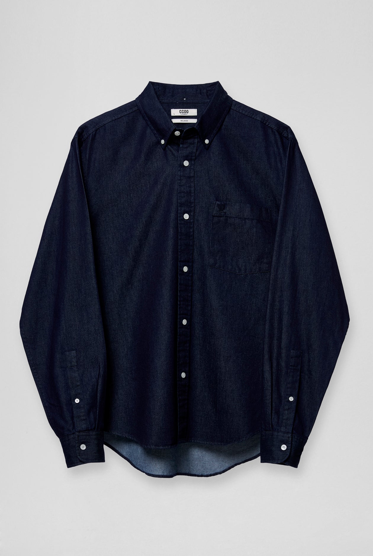 A Relaxed ed-fit chambray shirt crafted from lightweight cotton for a soft, breathable feel. Designed with a classic shirt collar, button-front closure, chest pocket, and buttoned cuffs—offering an easy casual look that pairs well with chinos or denim for everyday wear.