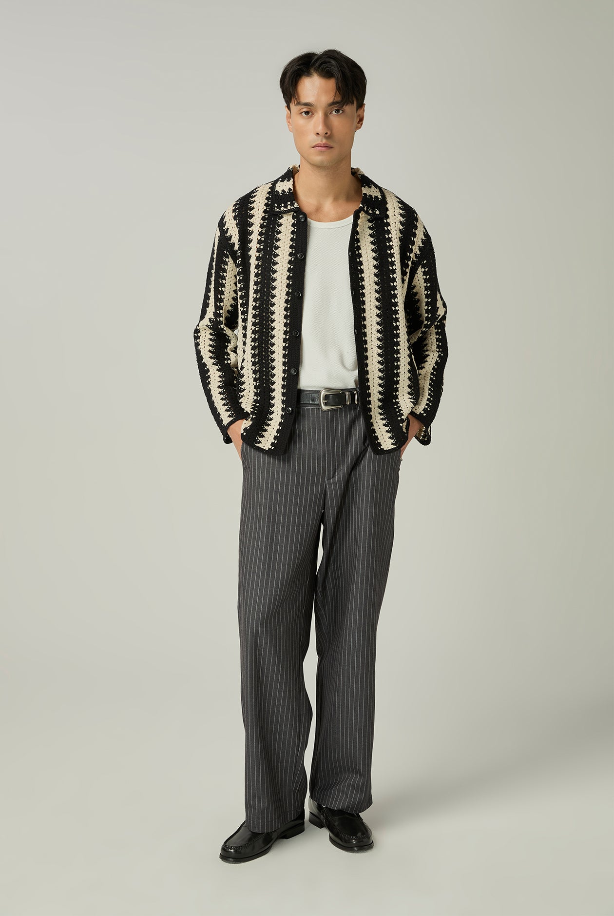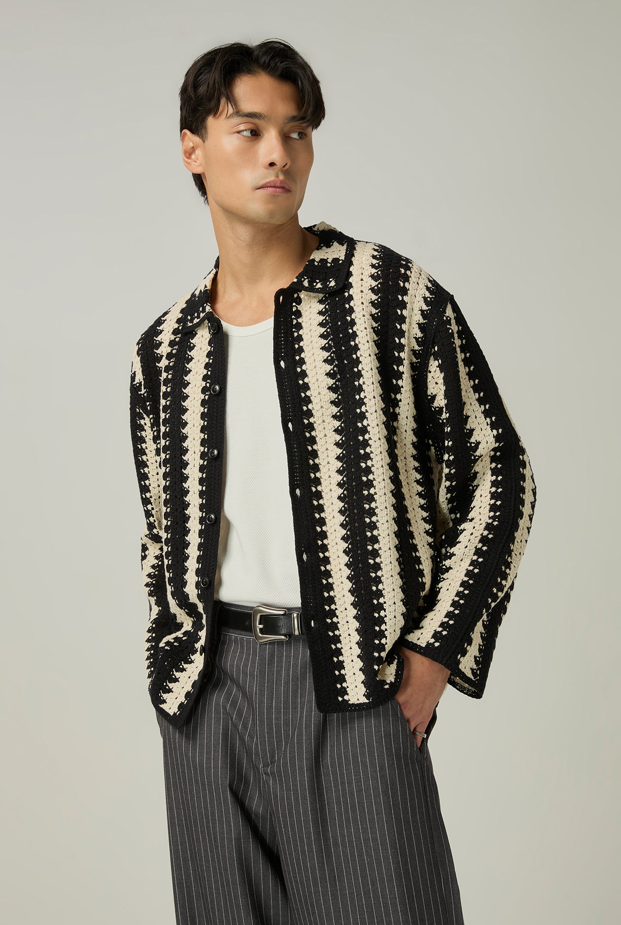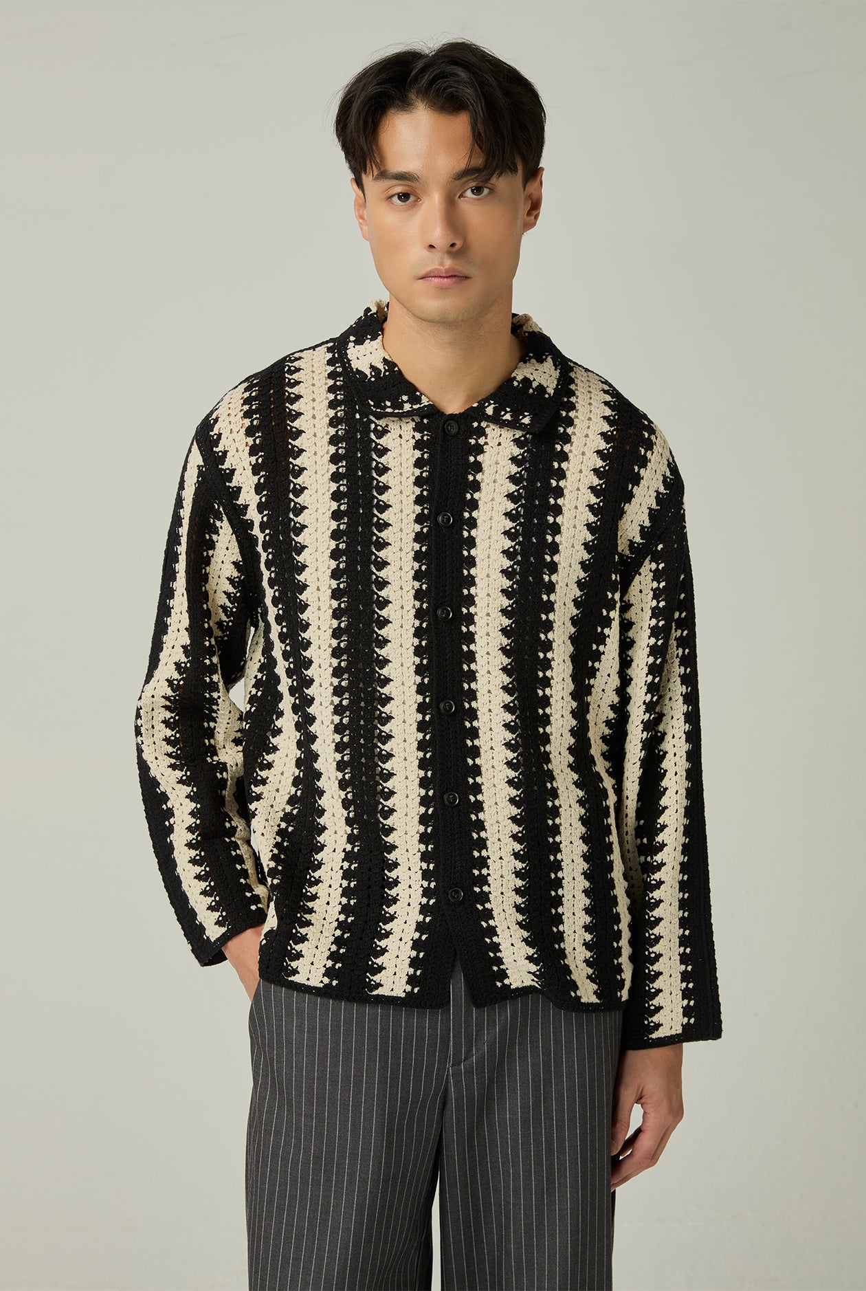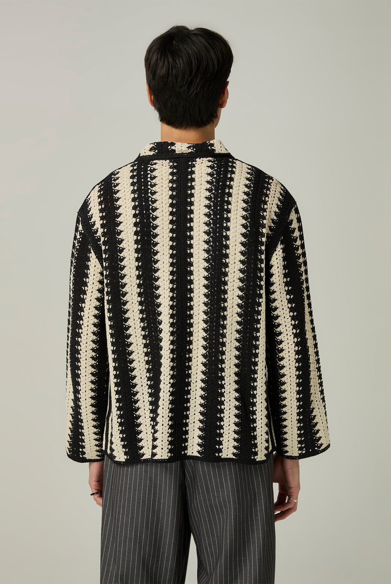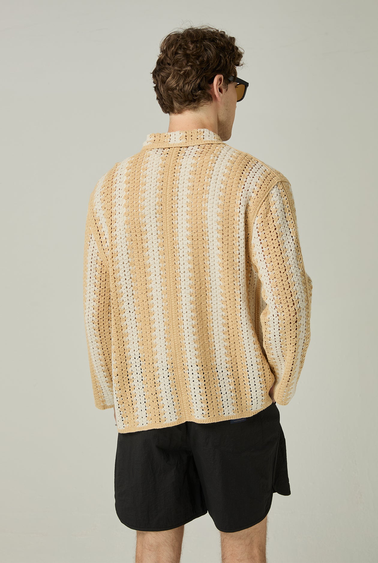 OPENWORK KNIT STRIPED SHIRT