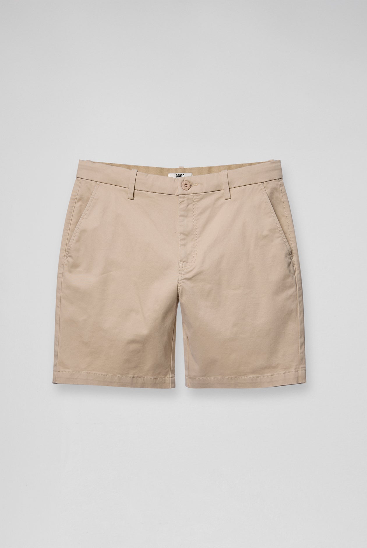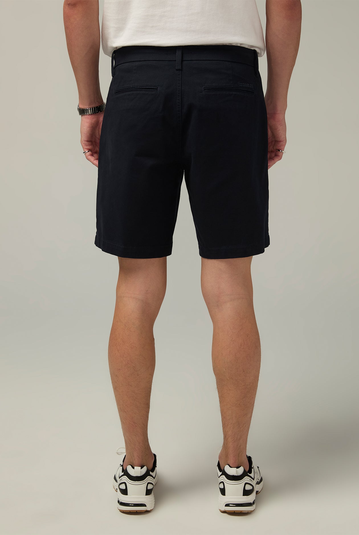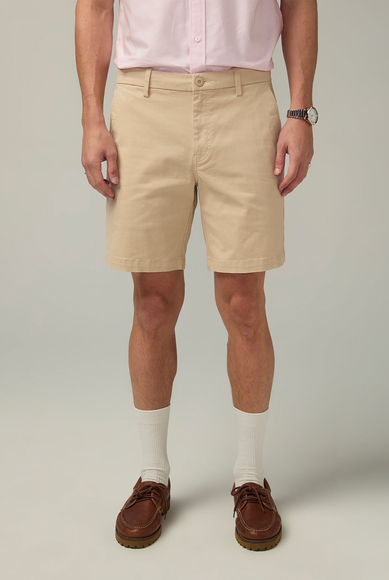 Straight-fit chino shorts made from breathable cotton twill with a touch of spandex for light flexibility. Designed with a clean mid-rise silhouette, button-front closure, and belt loops, making them easy to pair with tees, polos, or casual shirts for everyday styling.