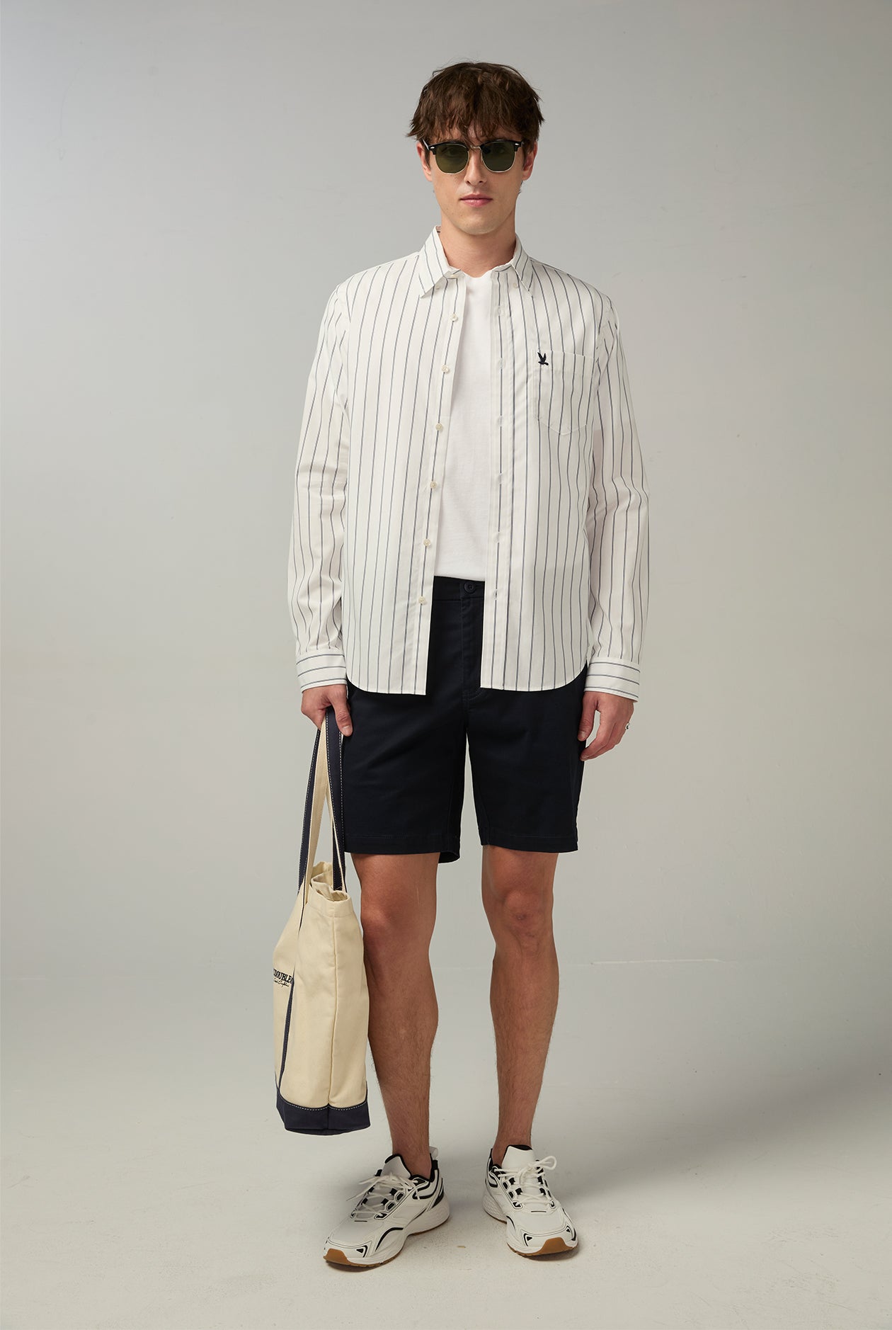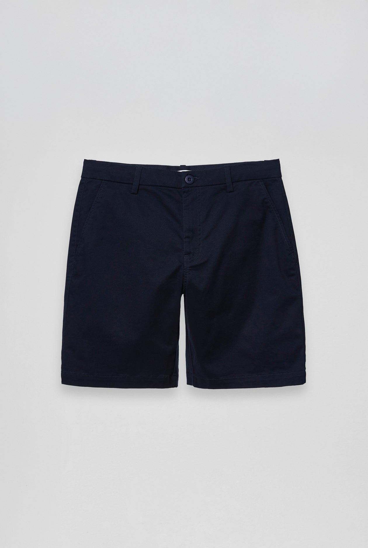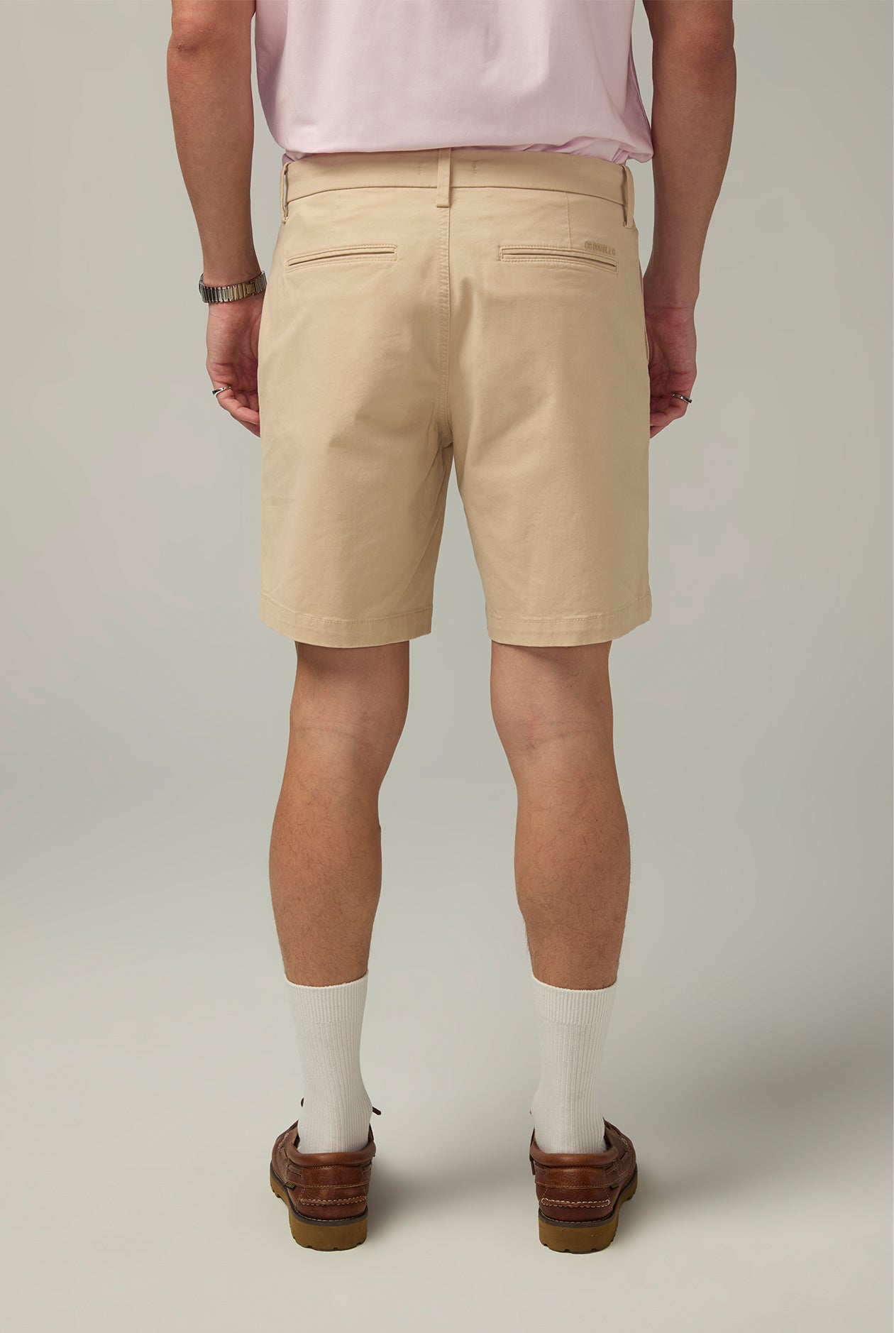Straight-fit chino shorts made from breathable cotton twill with a touch of spandex for light flexibility. Designed with a clean mid-rise silhouette, button-front closure, and belt loops, making them easy to pair with tees, polos, or casual shirts for everyday styling.