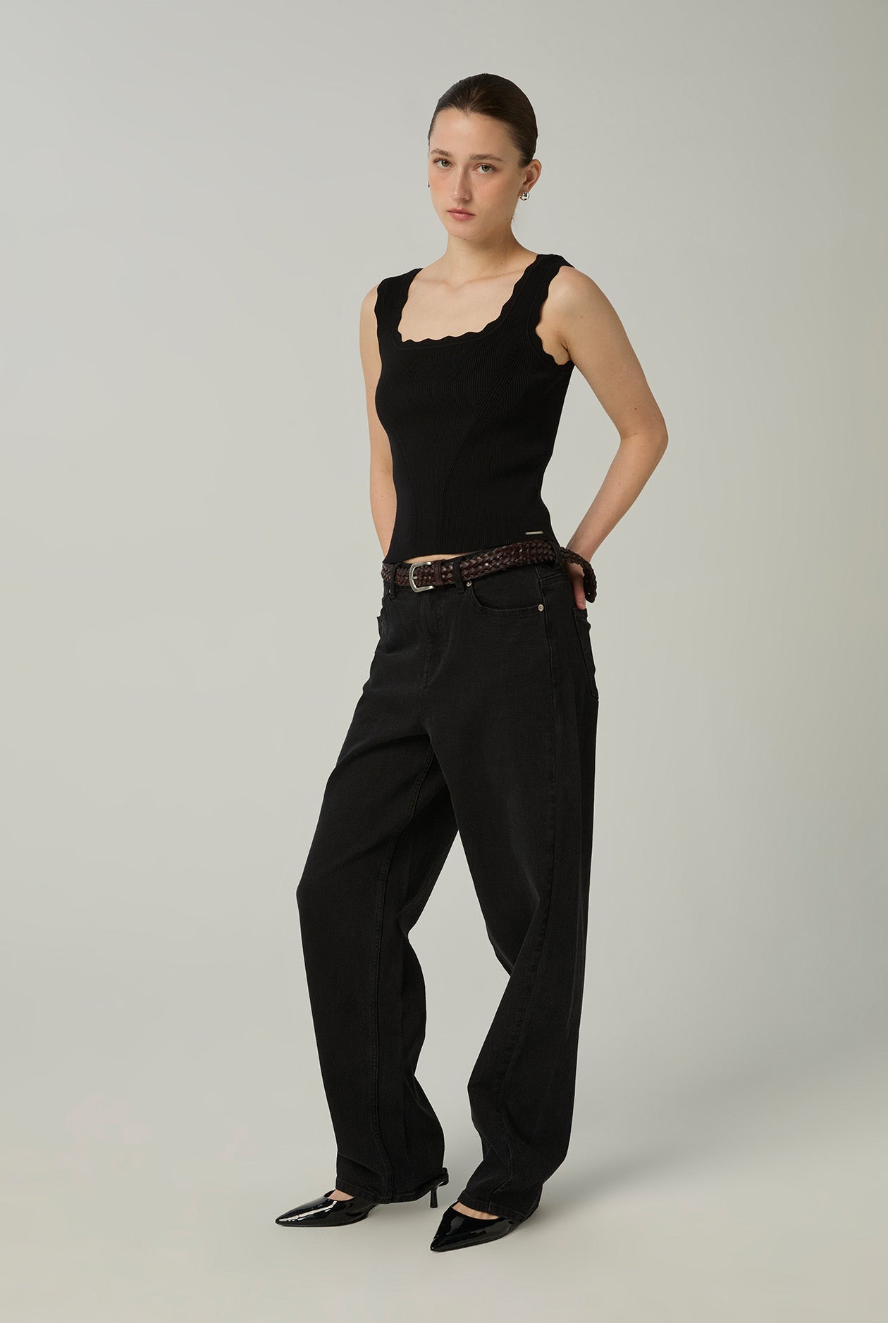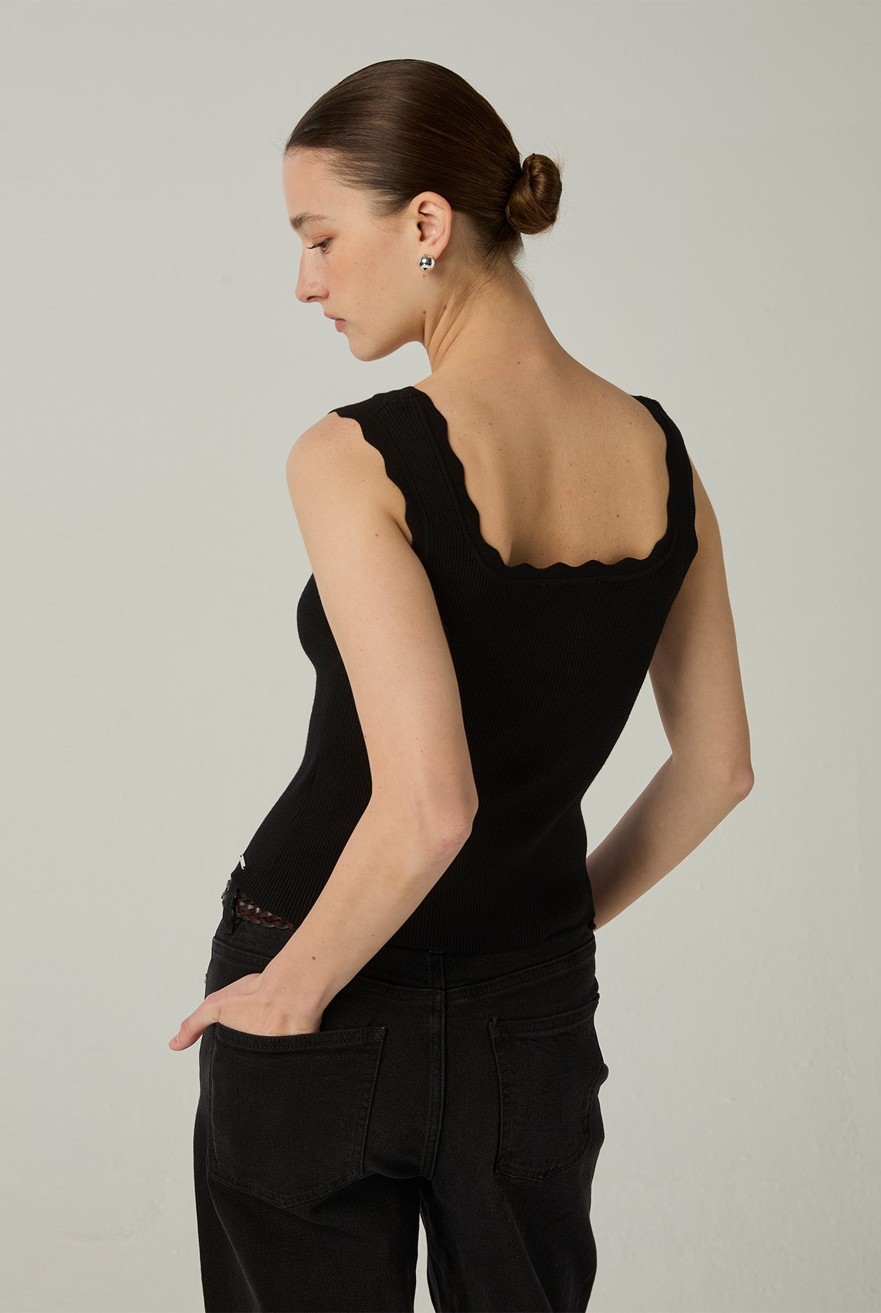 - Scalloped neckline