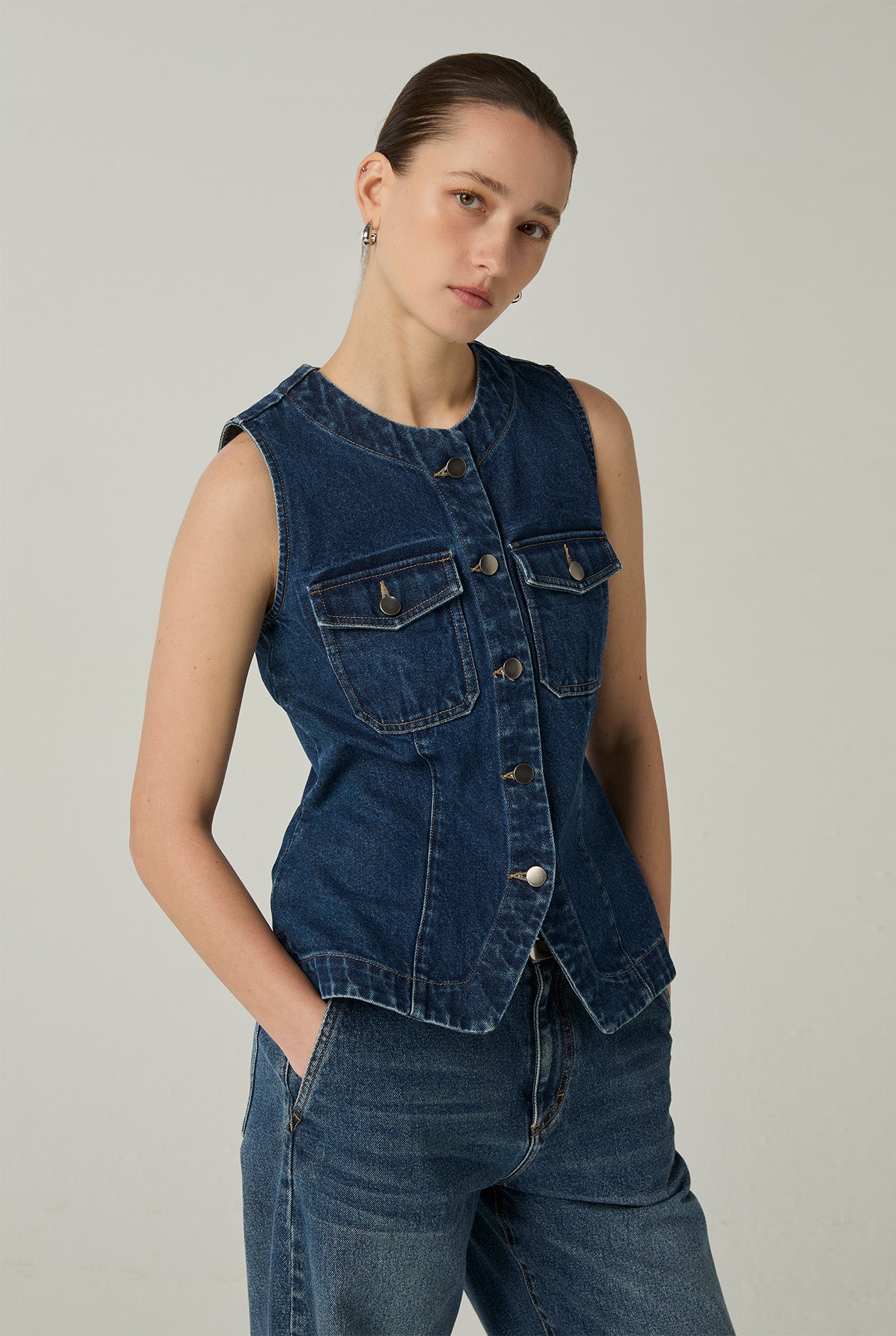 CREW NECK DENIM VEST