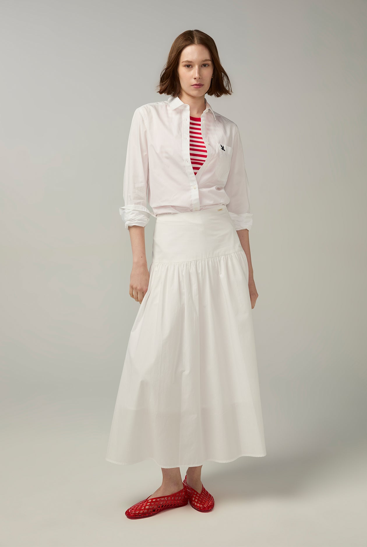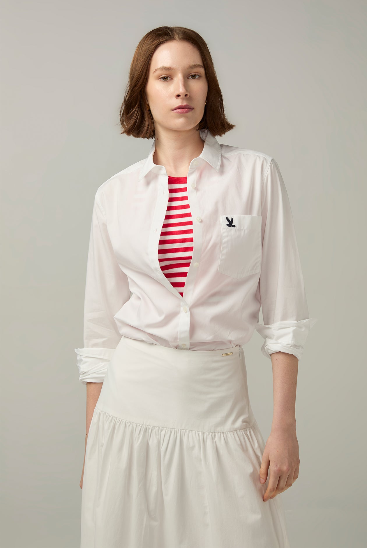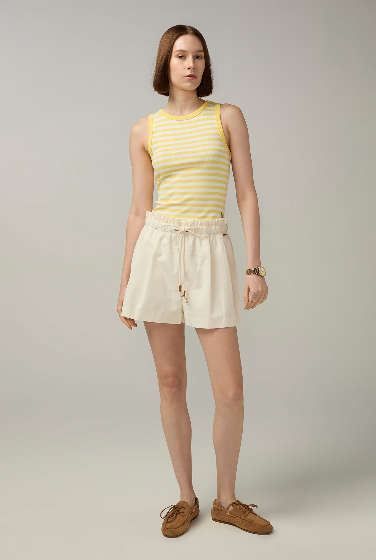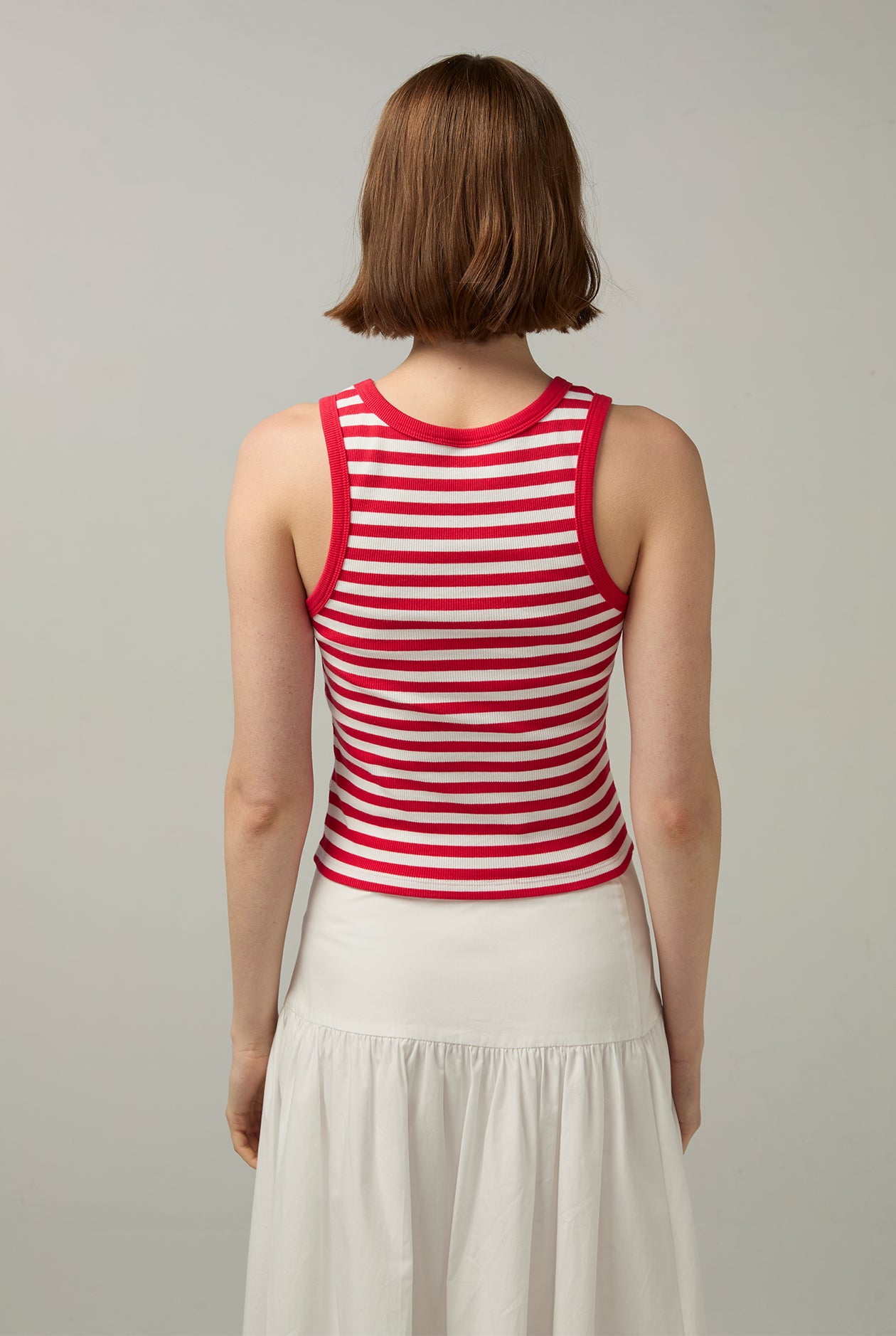 The striped tank top features a bird logo at the lower left hem. The slim fit reveals your figure in style. Alternating horizontal and white lines adds a playful touch of color to your outfit. Perfect for pairing with flared jeans or high-waisted shorts for a summer look that's both sporty and chic at the same time.