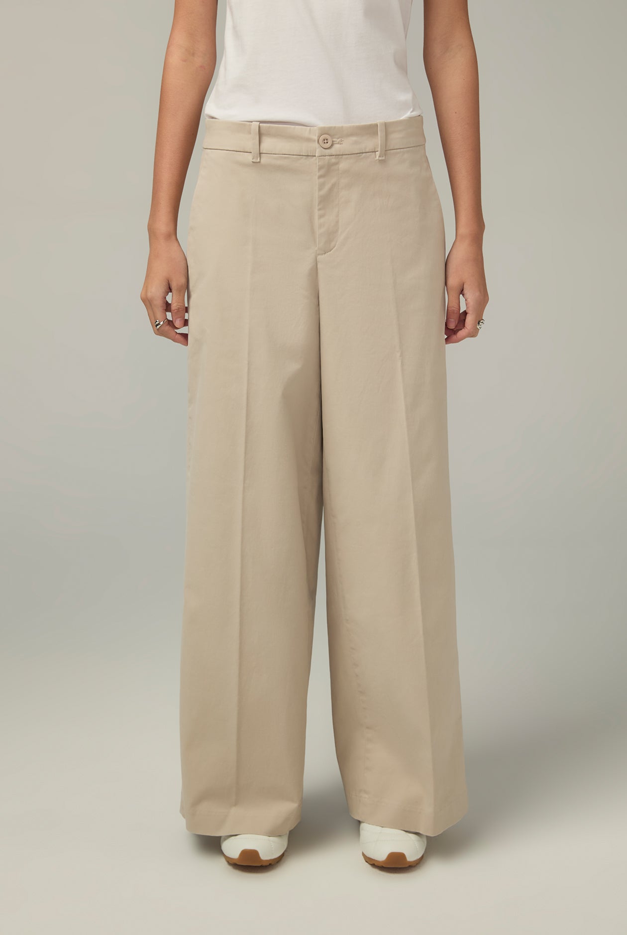 Wide-leg chino pants that deliver an instant minimalist, cool look. The straight, full-length silhouette keeps the shape comfort while allowing easy movement, and the low-rise fit adds a relaxed edge. Whether paired with an oversized top or a more fitted silhouette, they create a clean, street-style look that fits effortlessly into everyday wear.