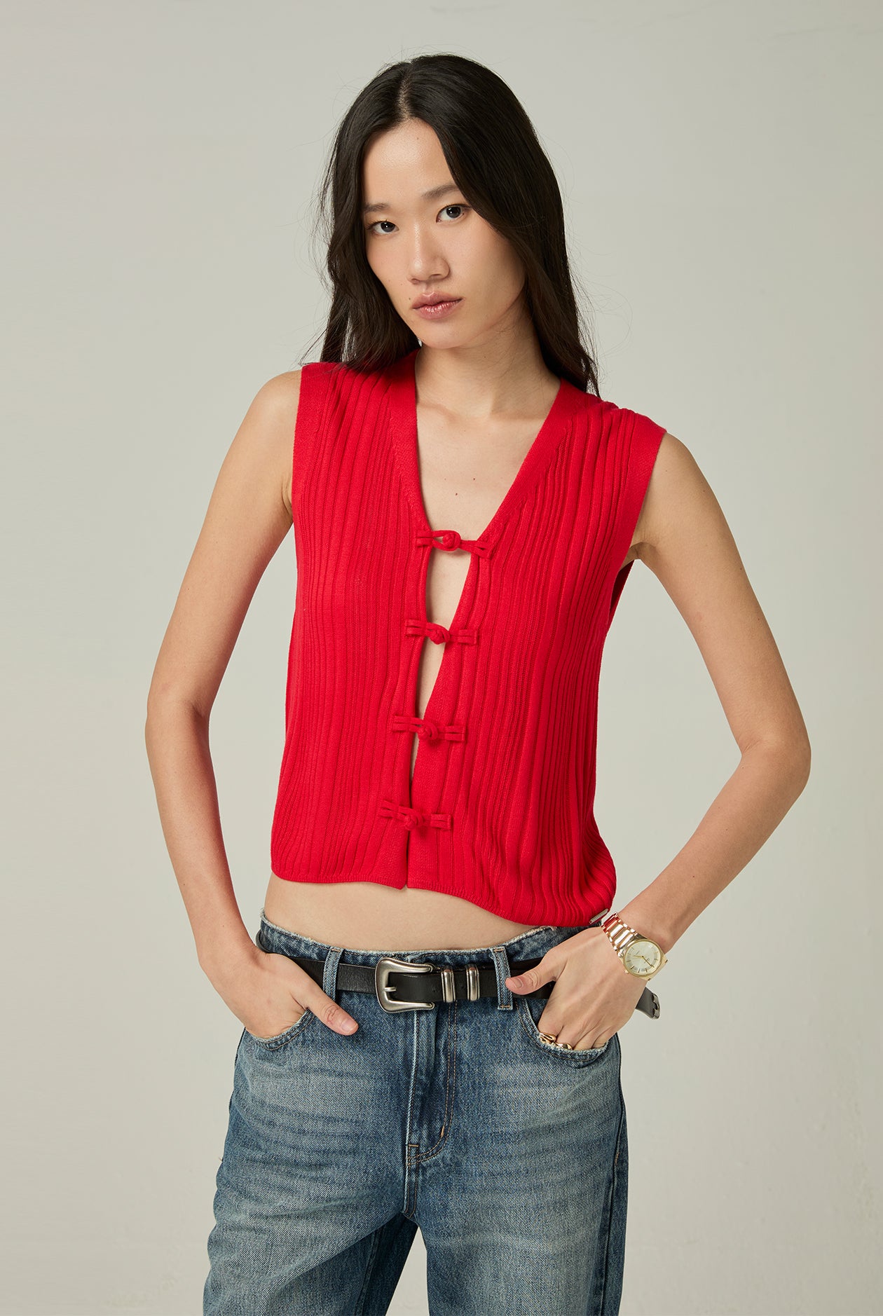 CHEONGSAM BUCKLE KNITTED RED WAISTCOAT