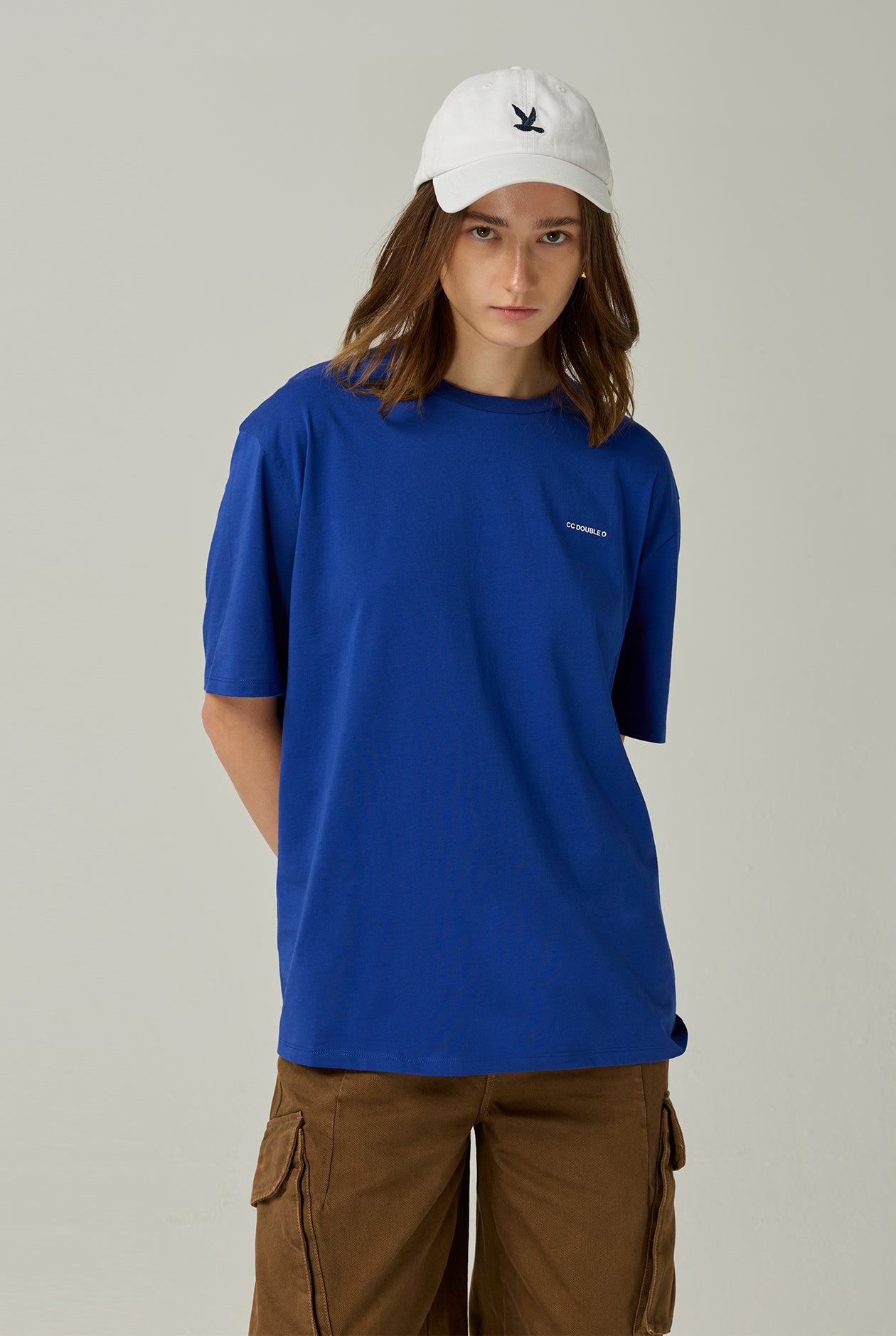 Blue oversized T-shirt designed for a relaxed yet modern look. Made from soft cotton single jersey fabric for comfortable everyday wear. The back features a bold oversized “Power of Kindness” graphic, created using a combination of digital printing and plastisol screen printing for added depth and clarity. The front keeps a clean, minimal design with a small logo detail. Easy to style and perfect for everyday casual looks.