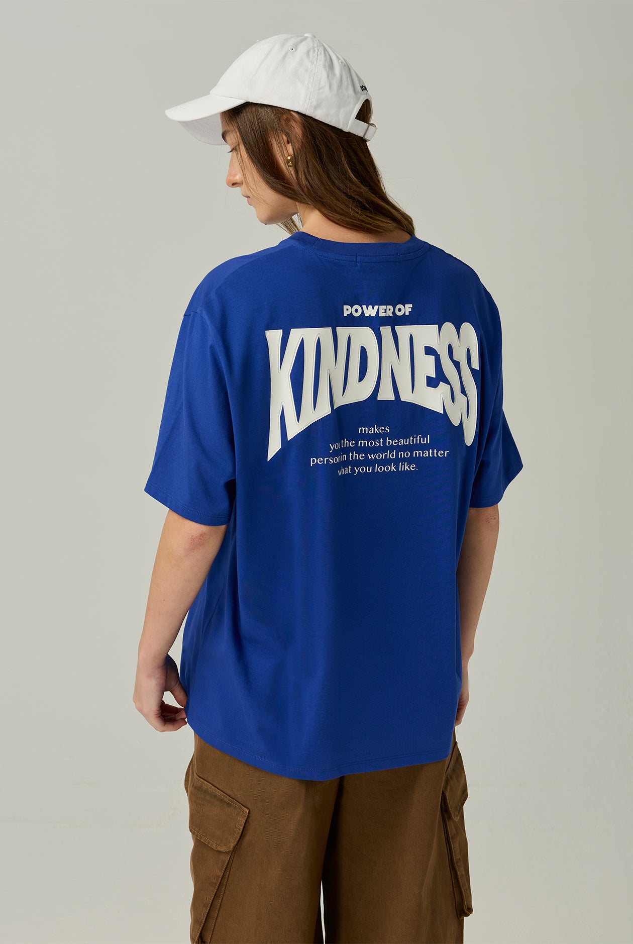 - "Power of Kindness" graphic print on the back