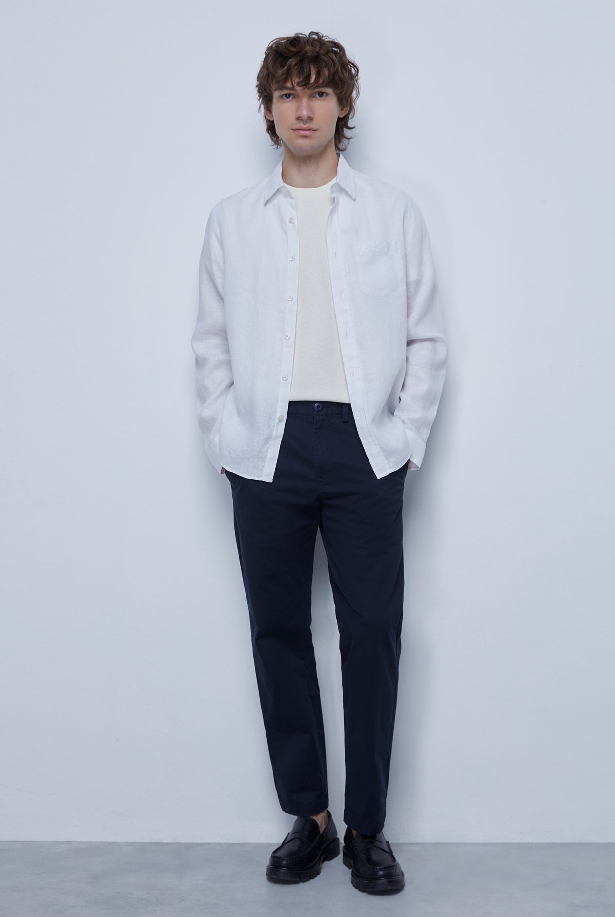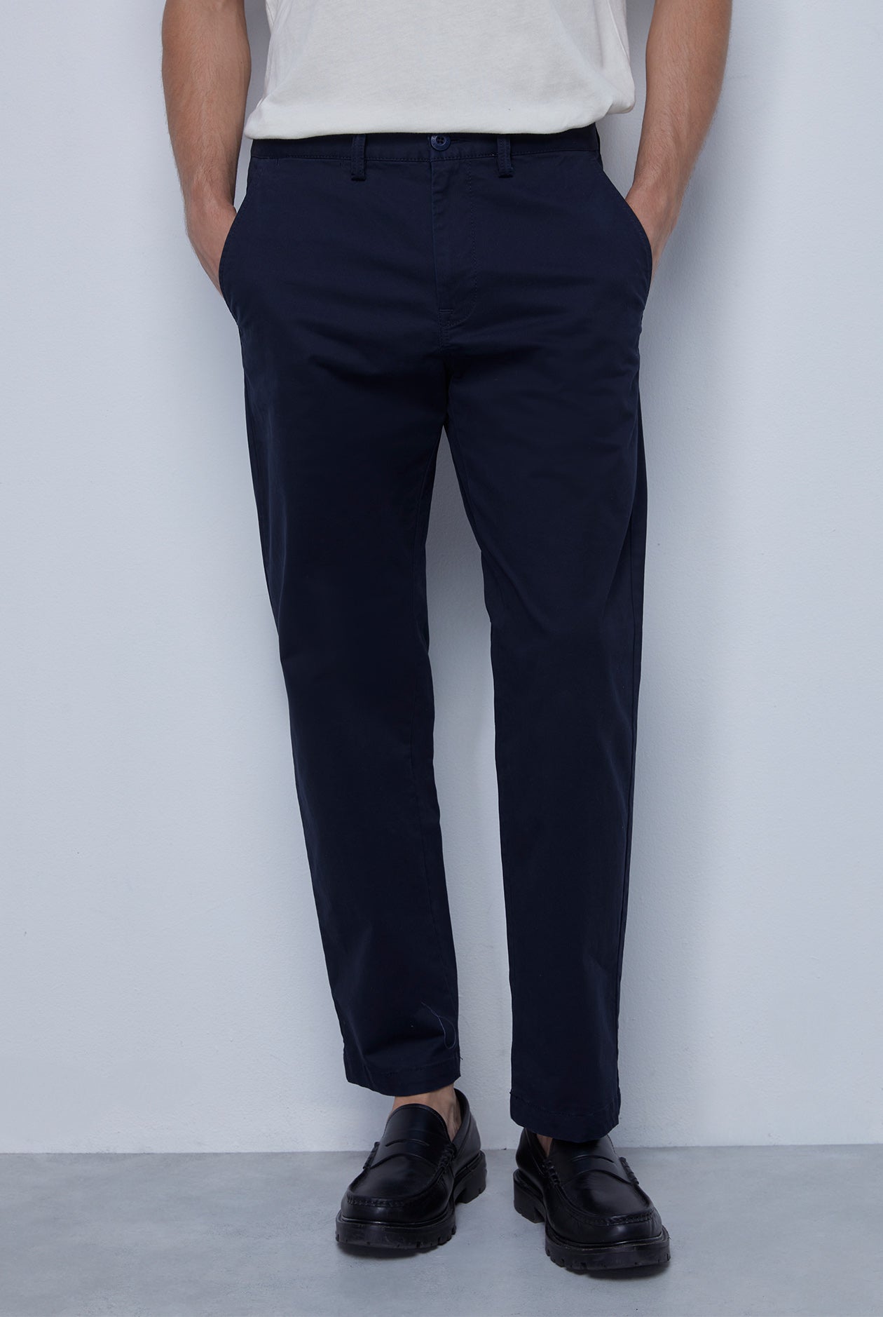 The Straight Twill Chino Pants are straight-fit pants made from durable twill chino fabric, offering comfort and style. Ideal for both formal and casual looks.