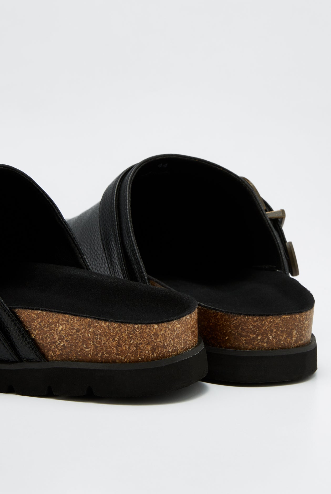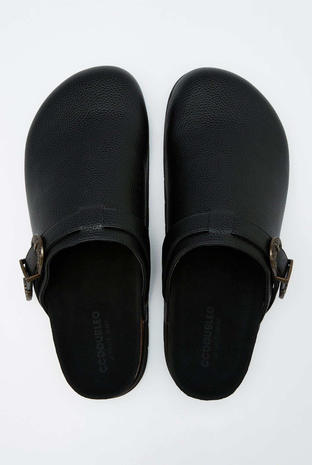 CLASSIC LEATHER CLOG MULES IN BLACK