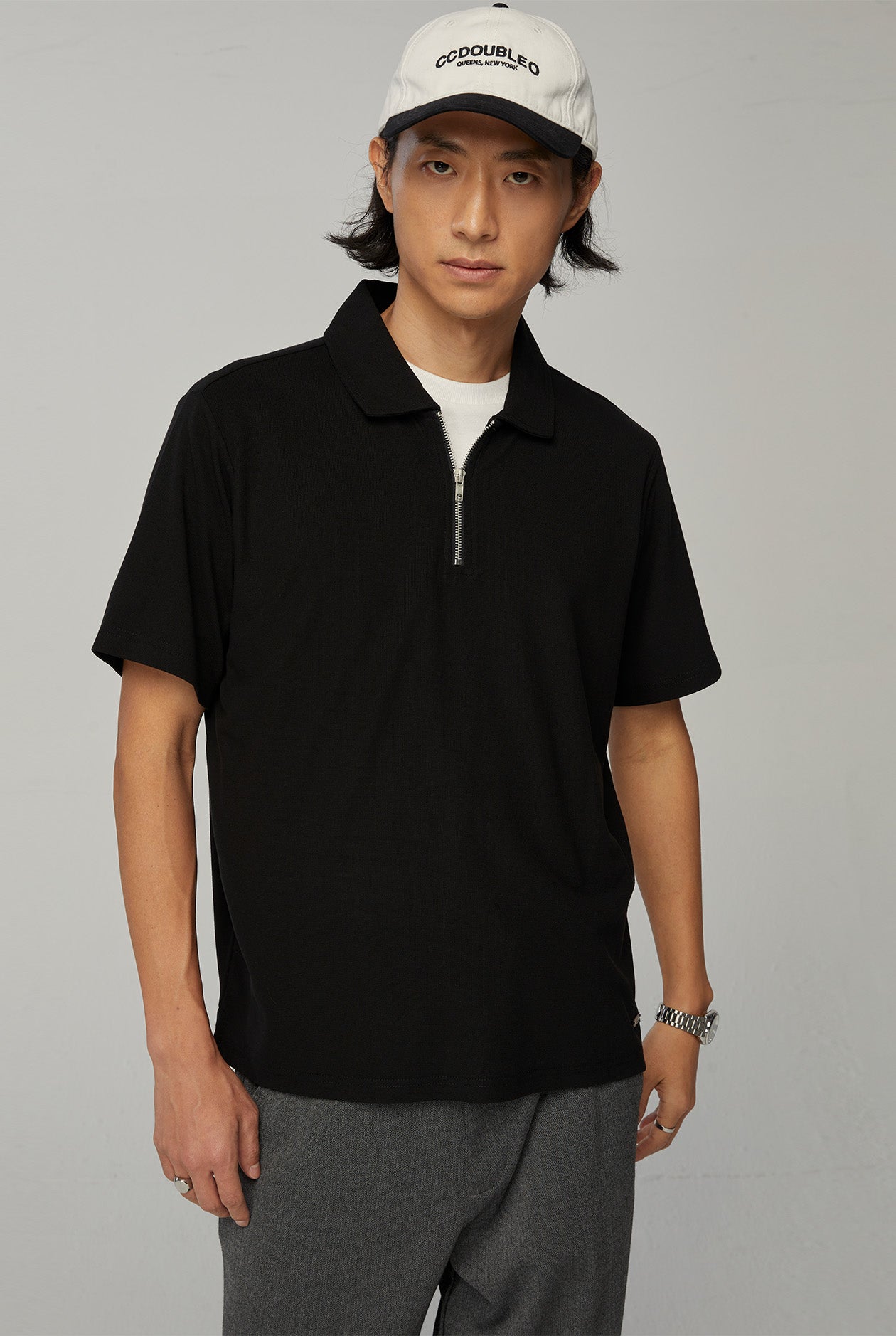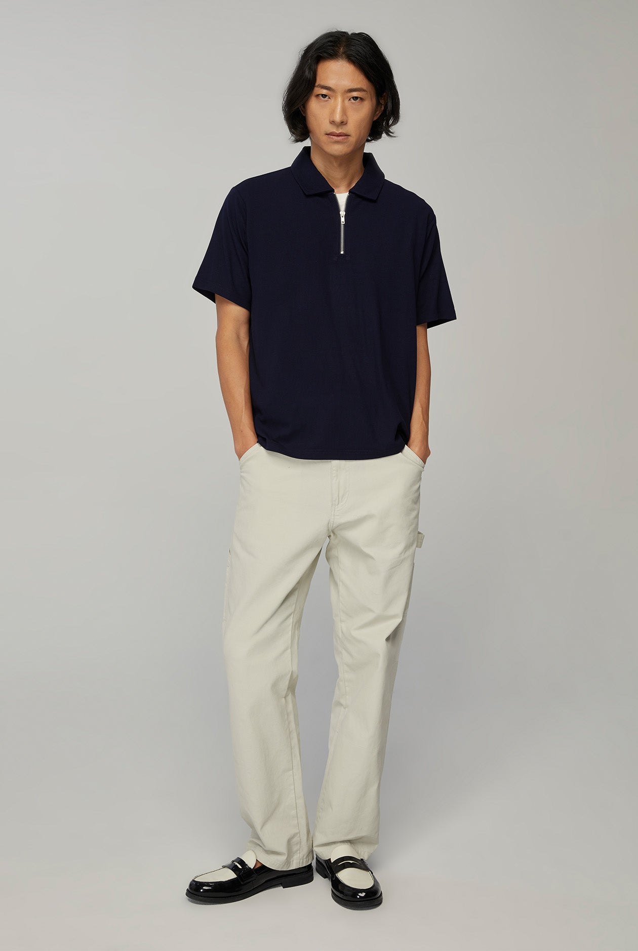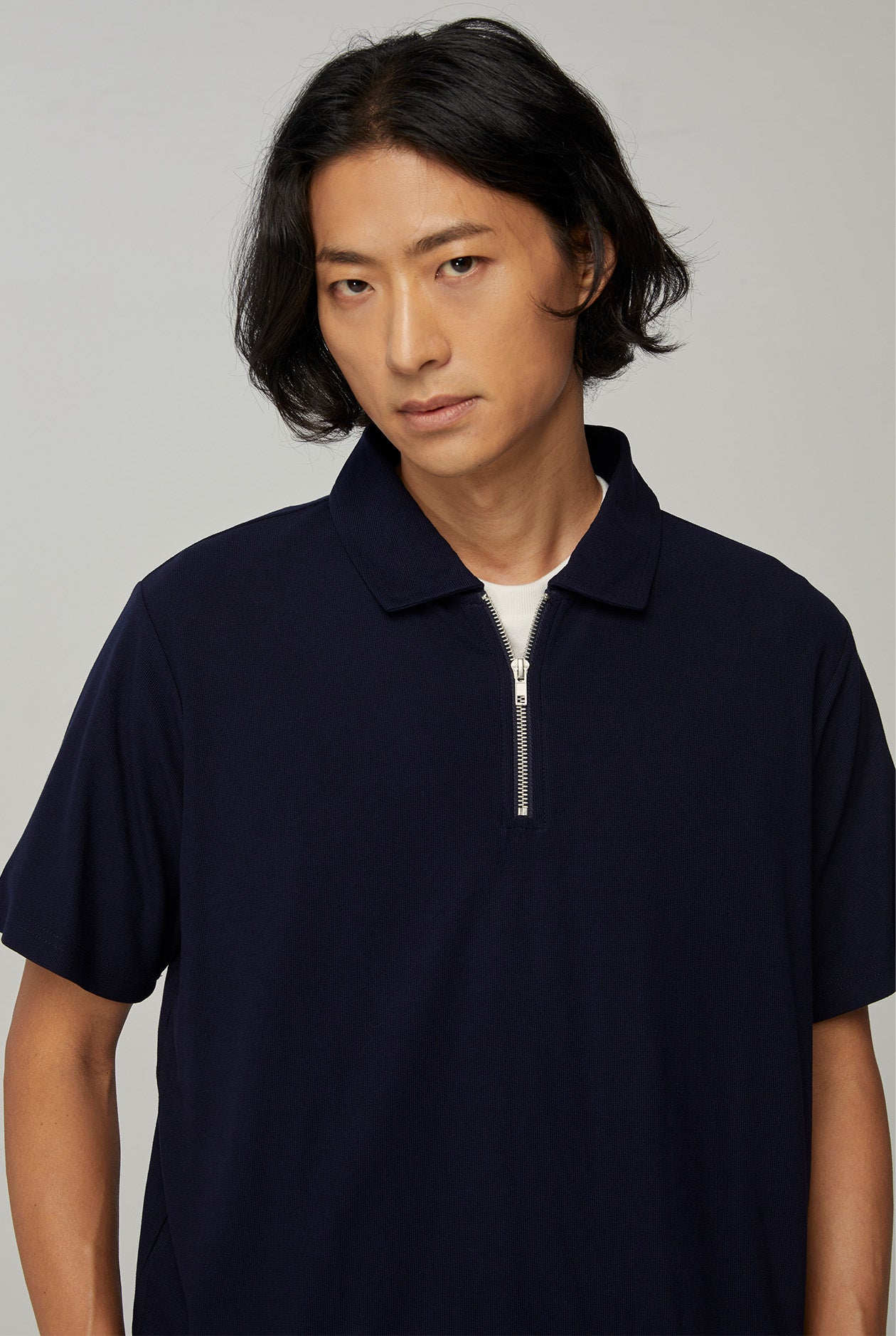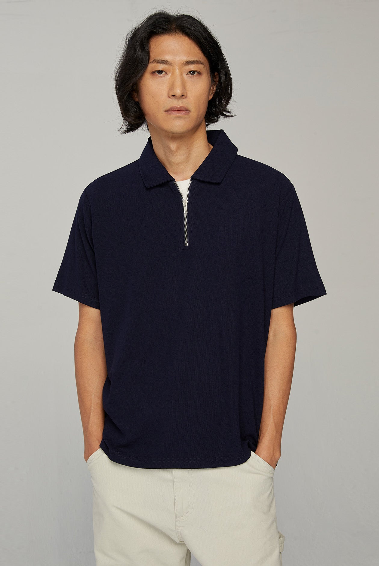 RELAXED FIT POLO SHIRT WITH ZIP NECK
