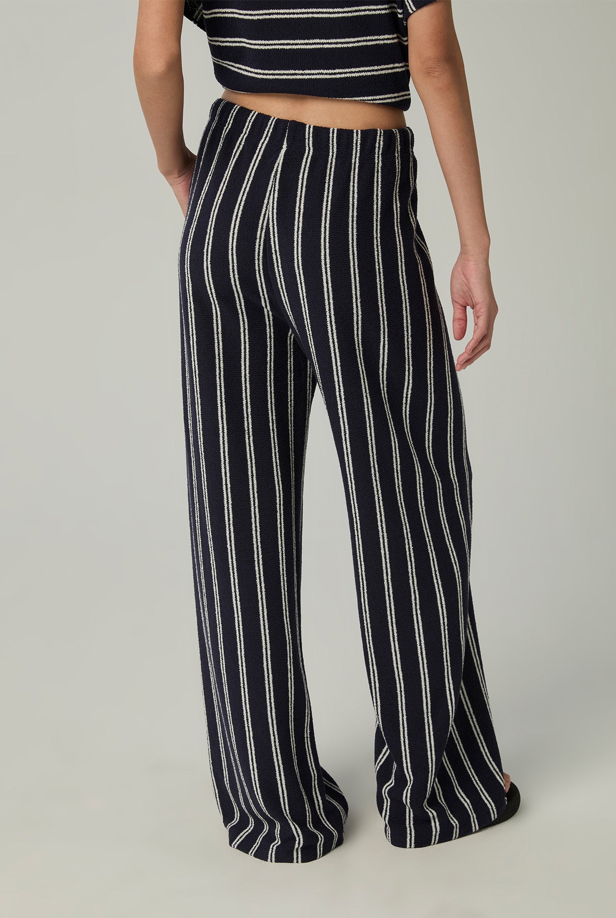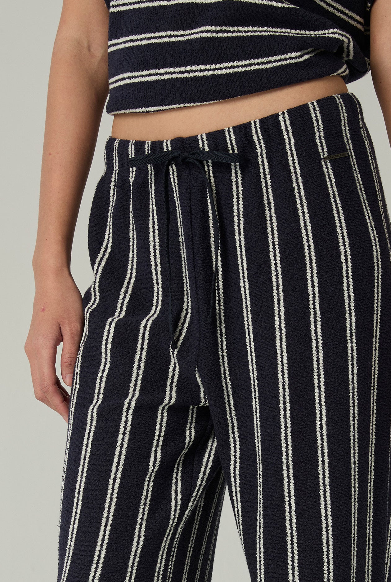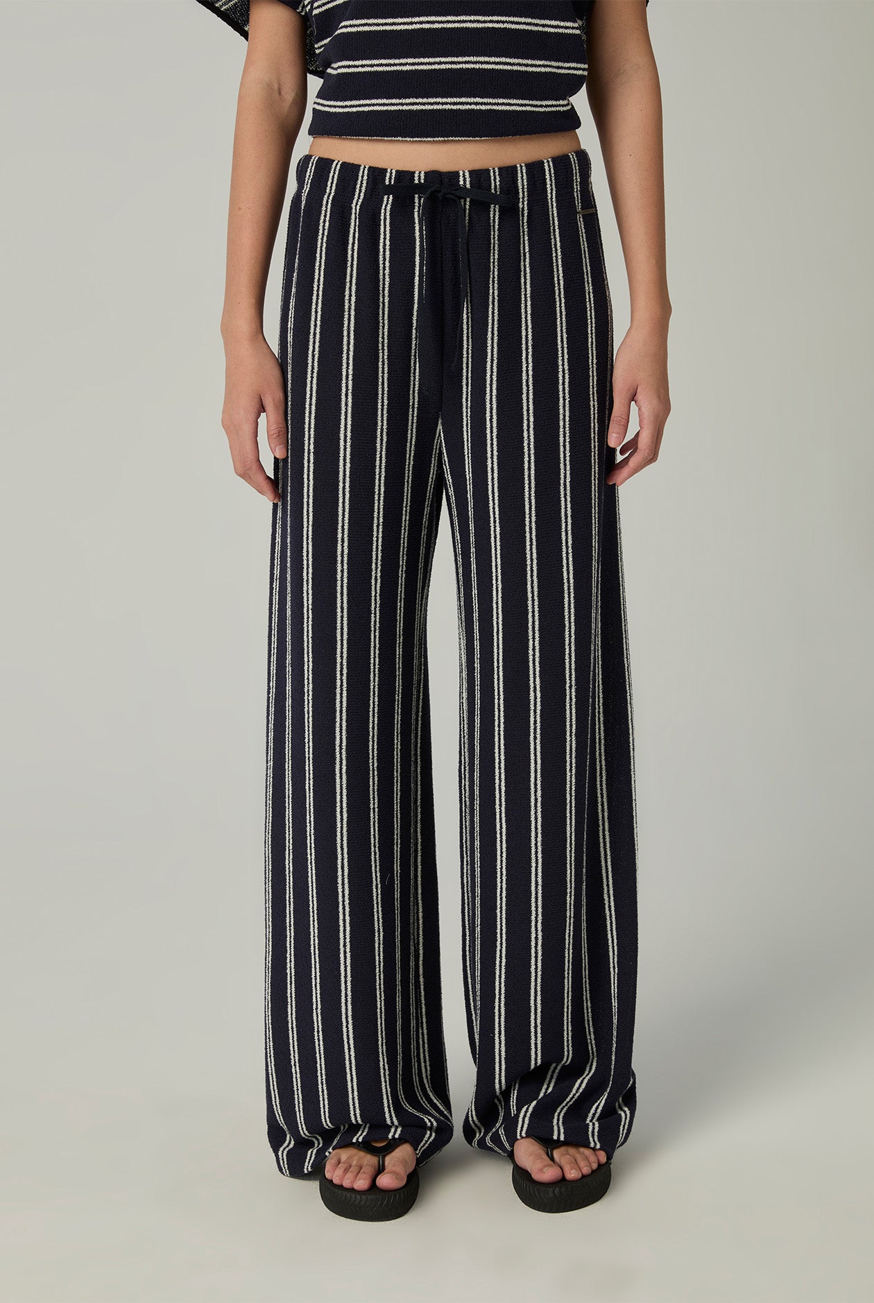 STRIPED OPENWORK KNITTED DRAWSTRING PANTS