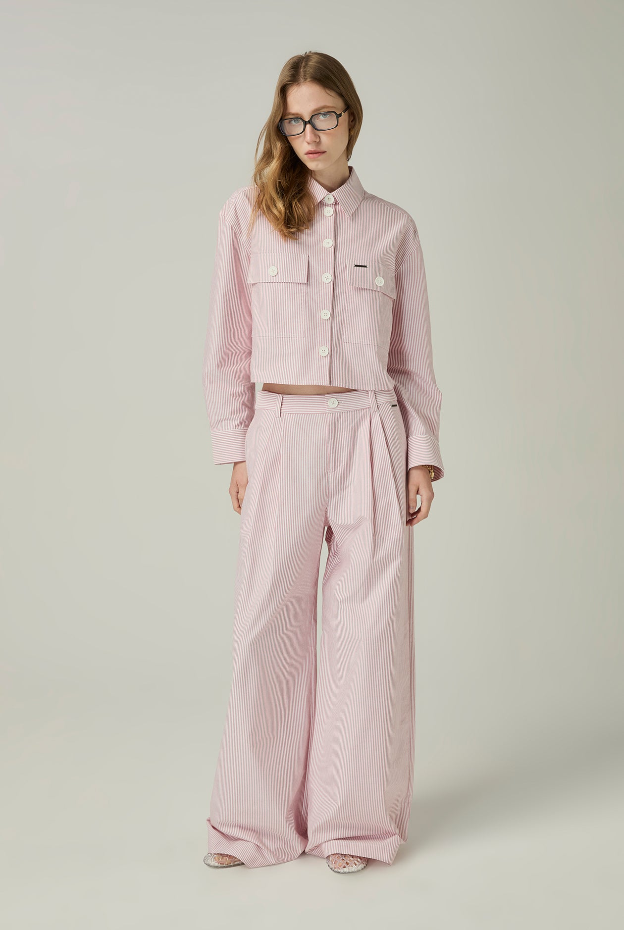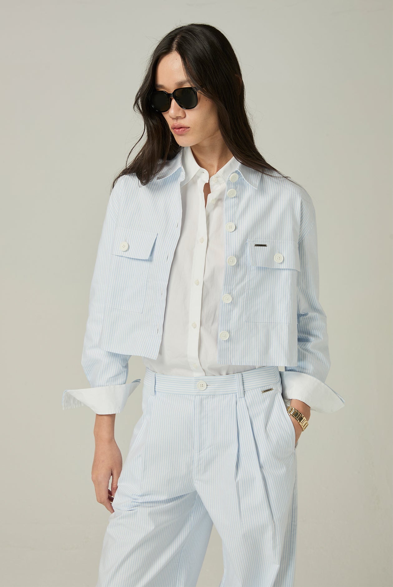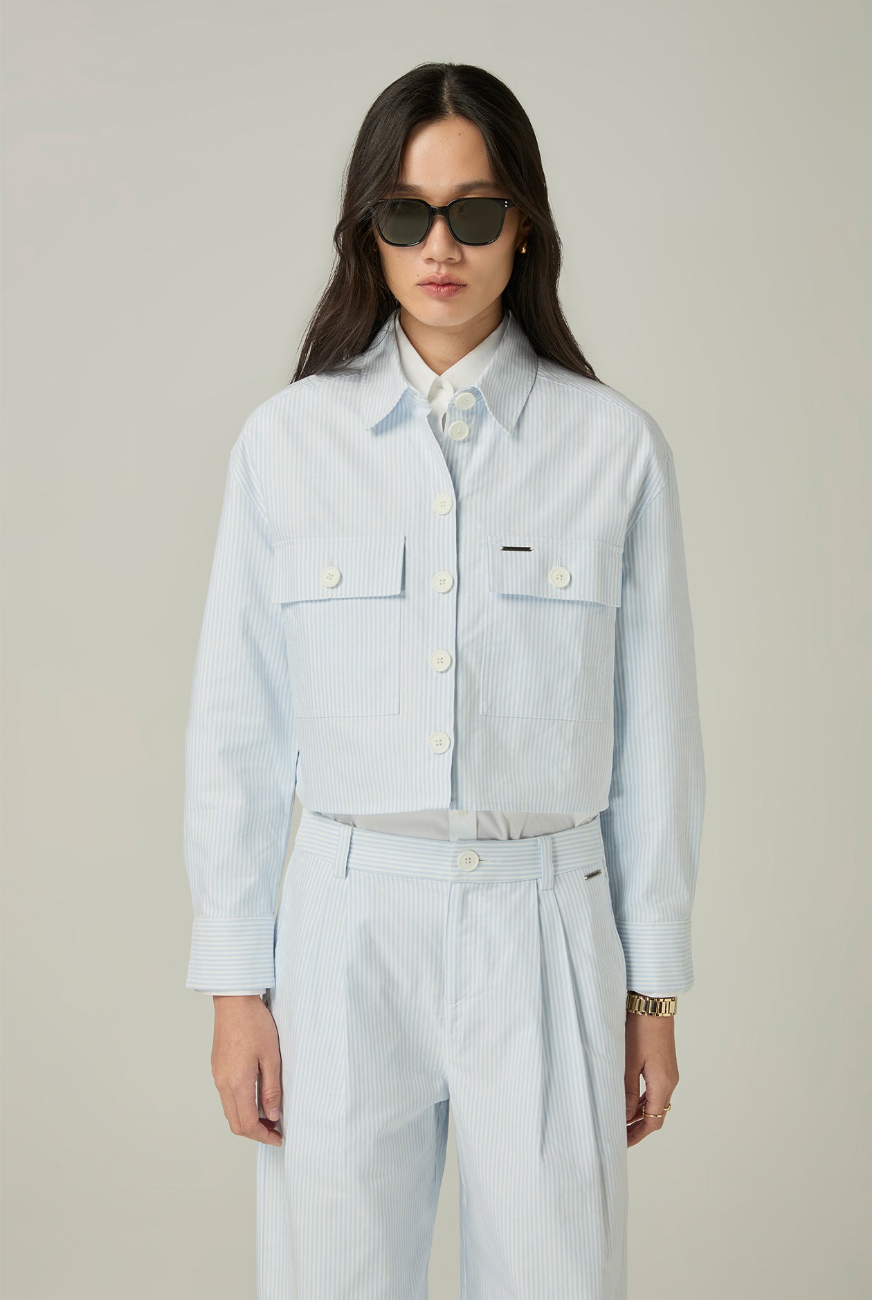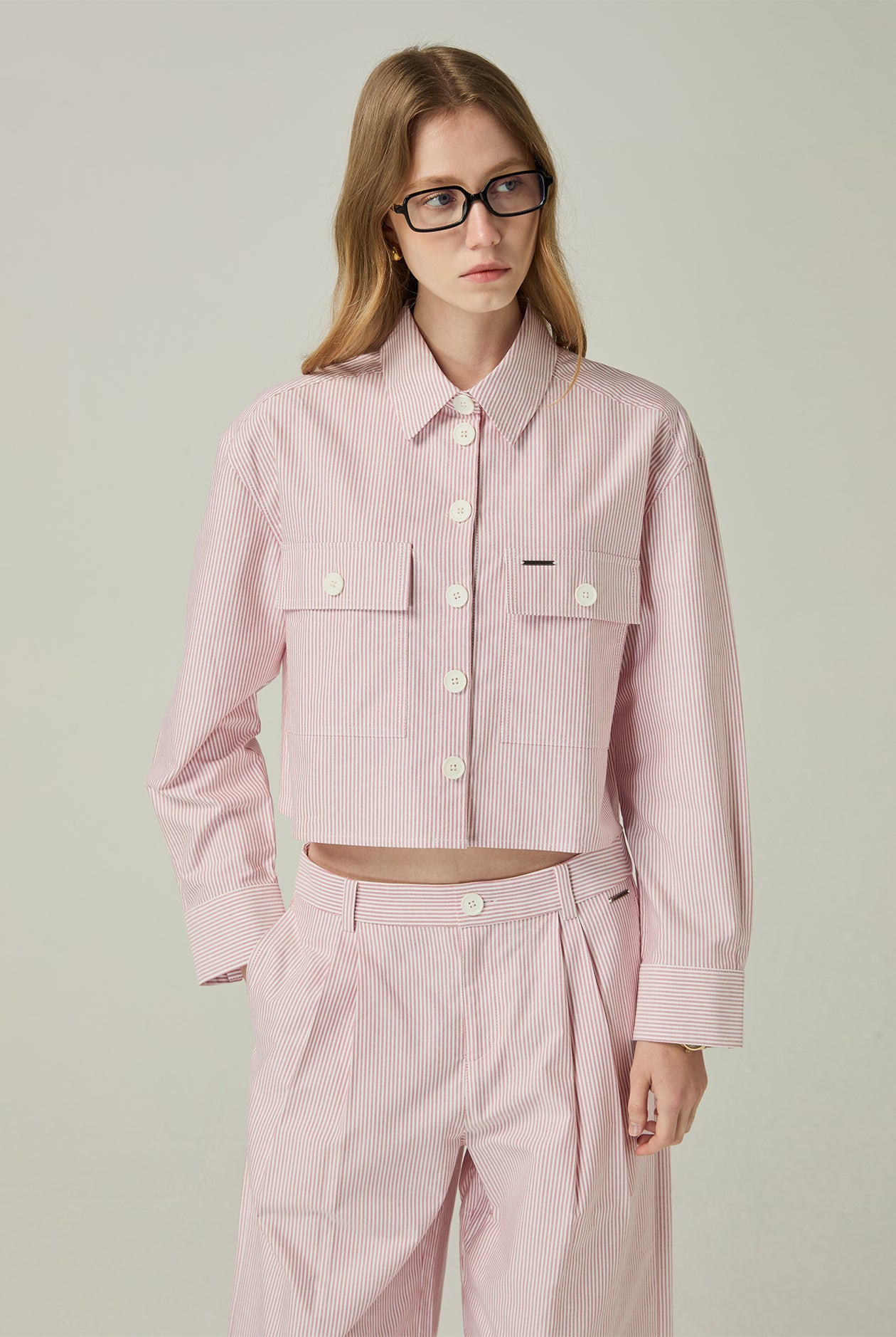 LONG SLEEVE STRIPED CROPPED SHIRT